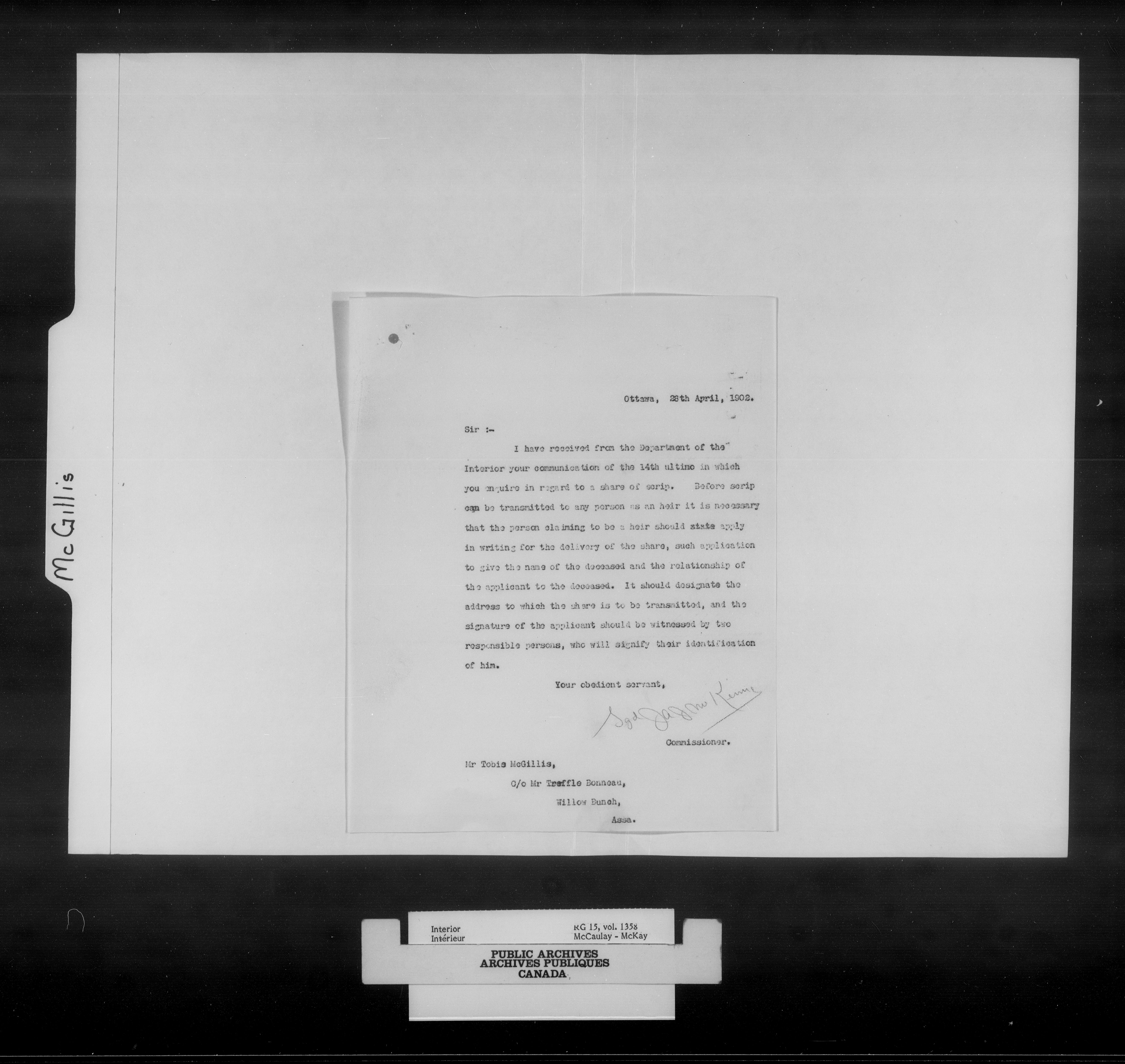 Department of the Interior, Dominion Lands Branch : North-West Territories Métis scrip applications : C-14987