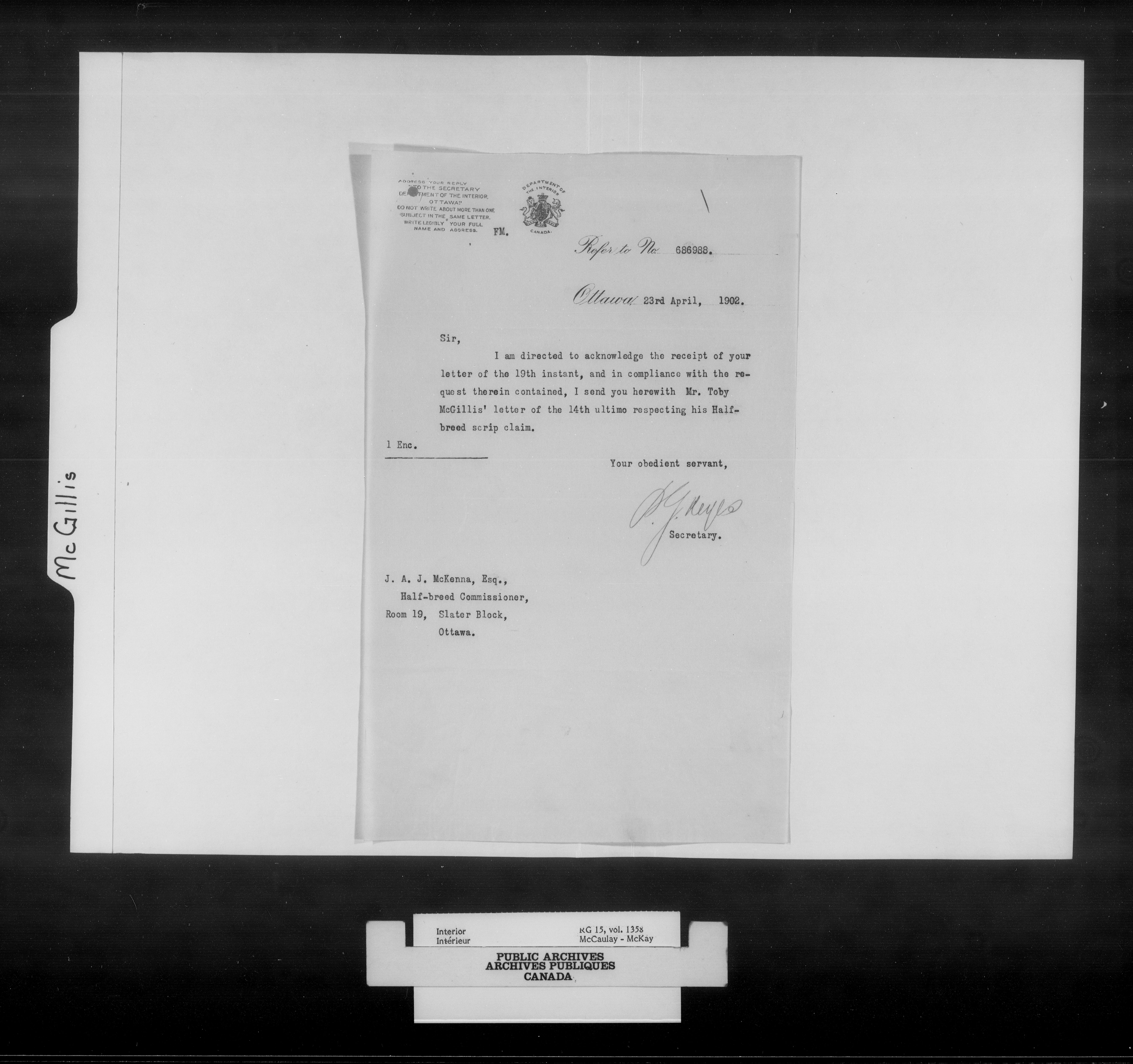 Department of the Interior, Dominion Lands Branch : North-West Territories Métis scrip applications - 14987