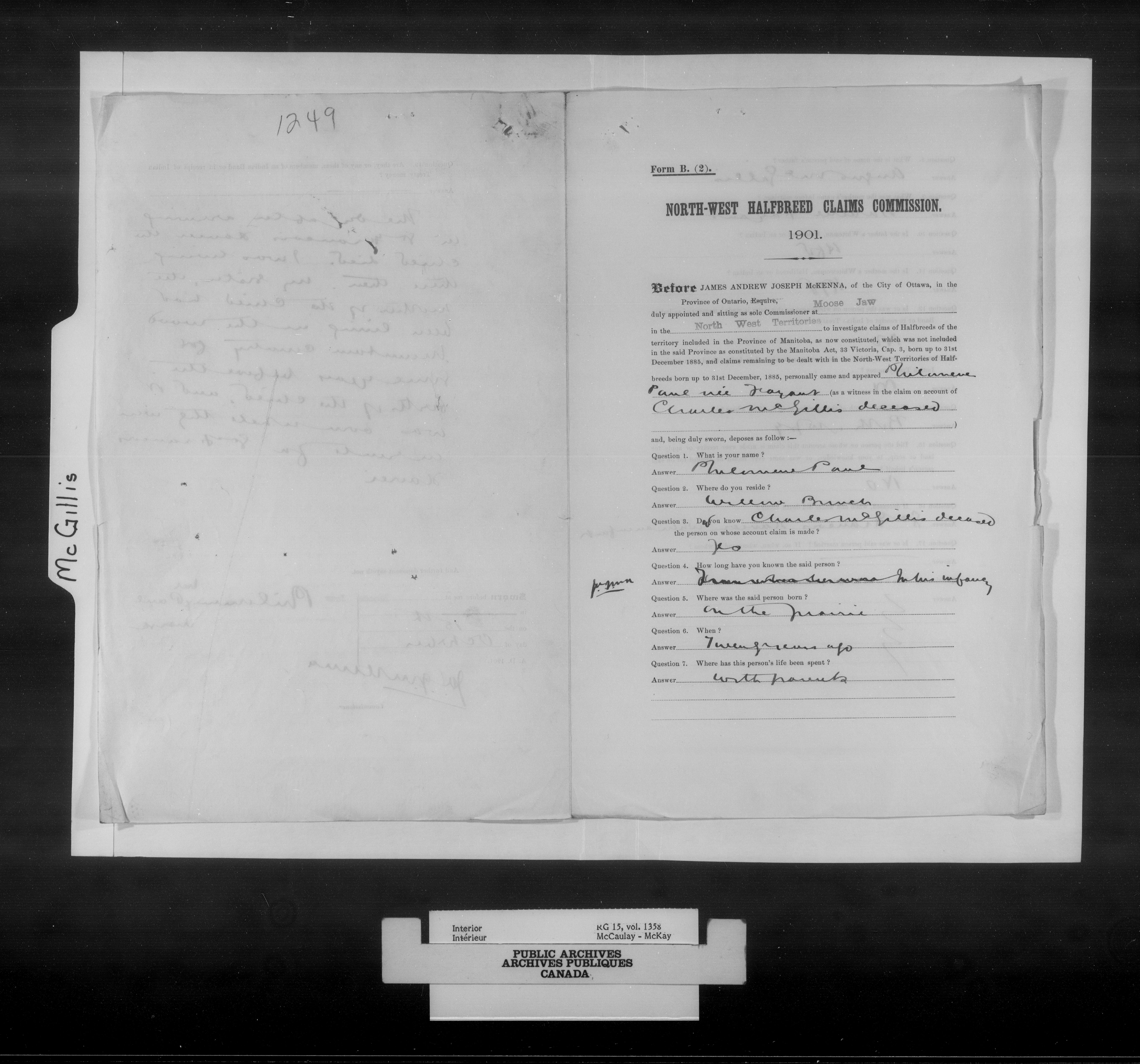 Department of the Interior, Dominion Lands Branch : North-West Territories Métis scrip applications - 14987
