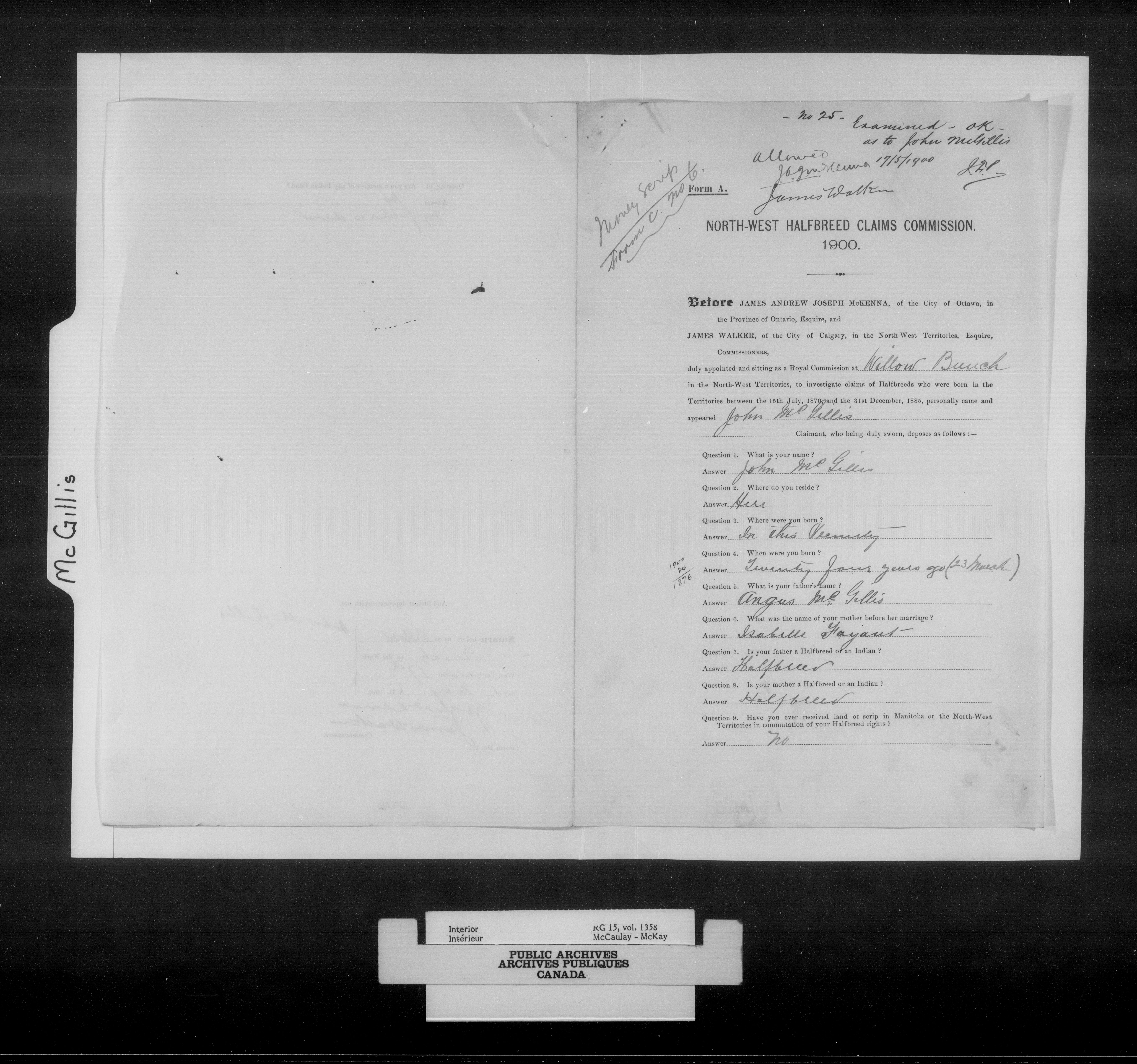 Department of the Interior, Dominion Lands Branch : North-West Territories Métis scrip applications : C-14987