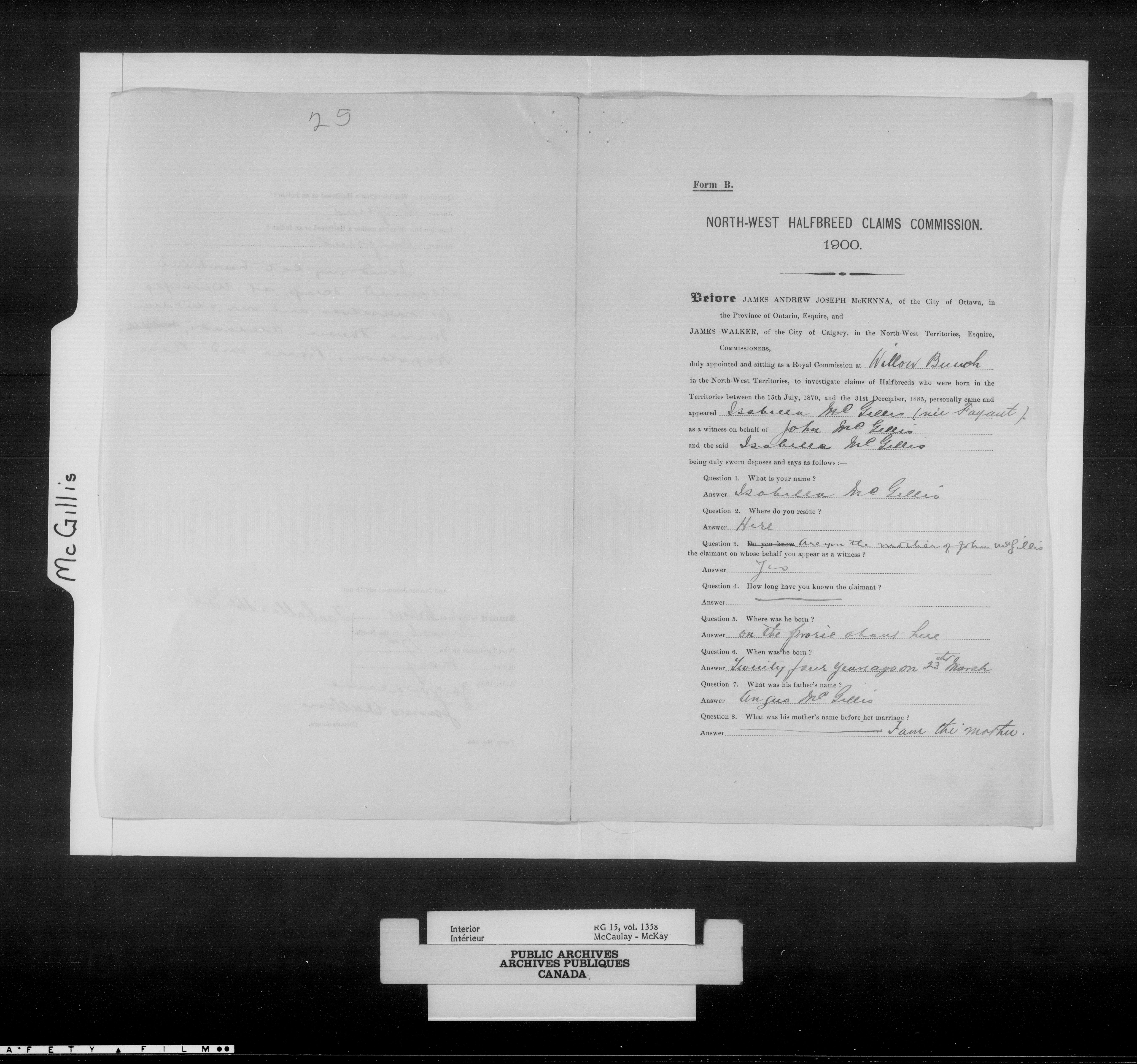 Department of the Interior, Dominion Lands Branch : North-West Territories Métis scrip applications - 14987