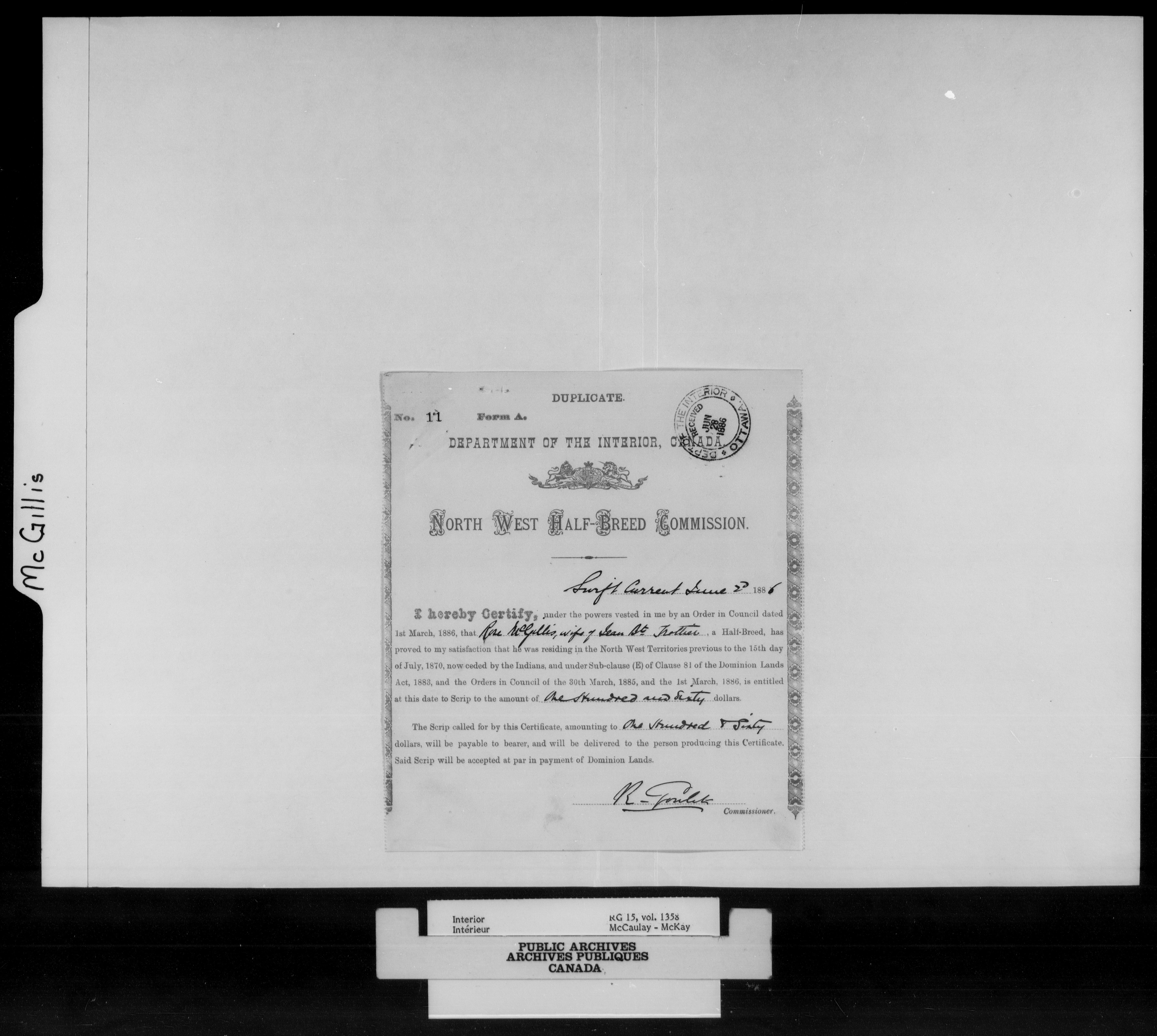 Department of the Interior, Dominion Lands Branch : North-West Territories Métis scrip applications : C-14988