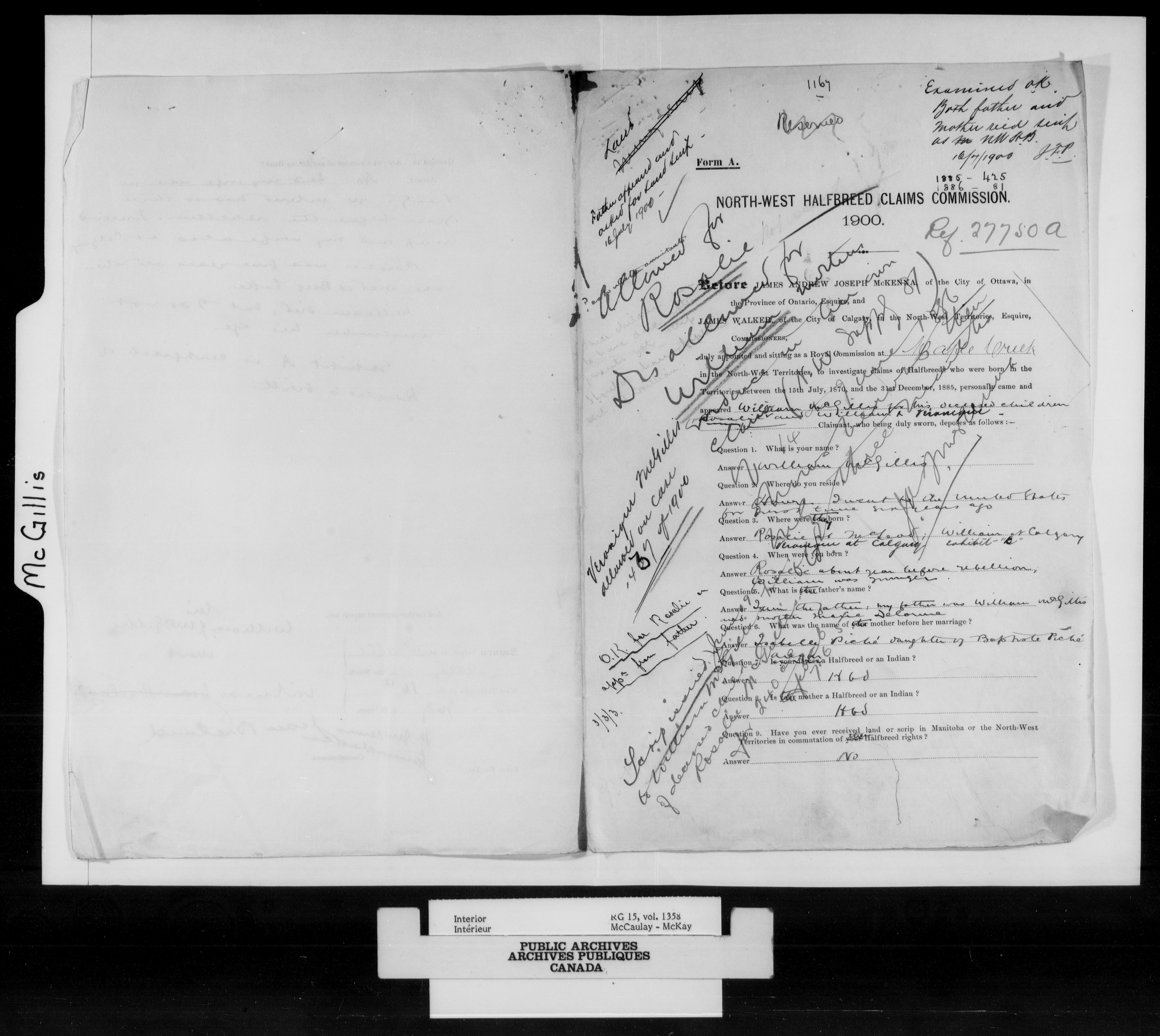 Department of the Interior, Dominion Lands Branch : North-West Territories Métis scrip applications - 14988