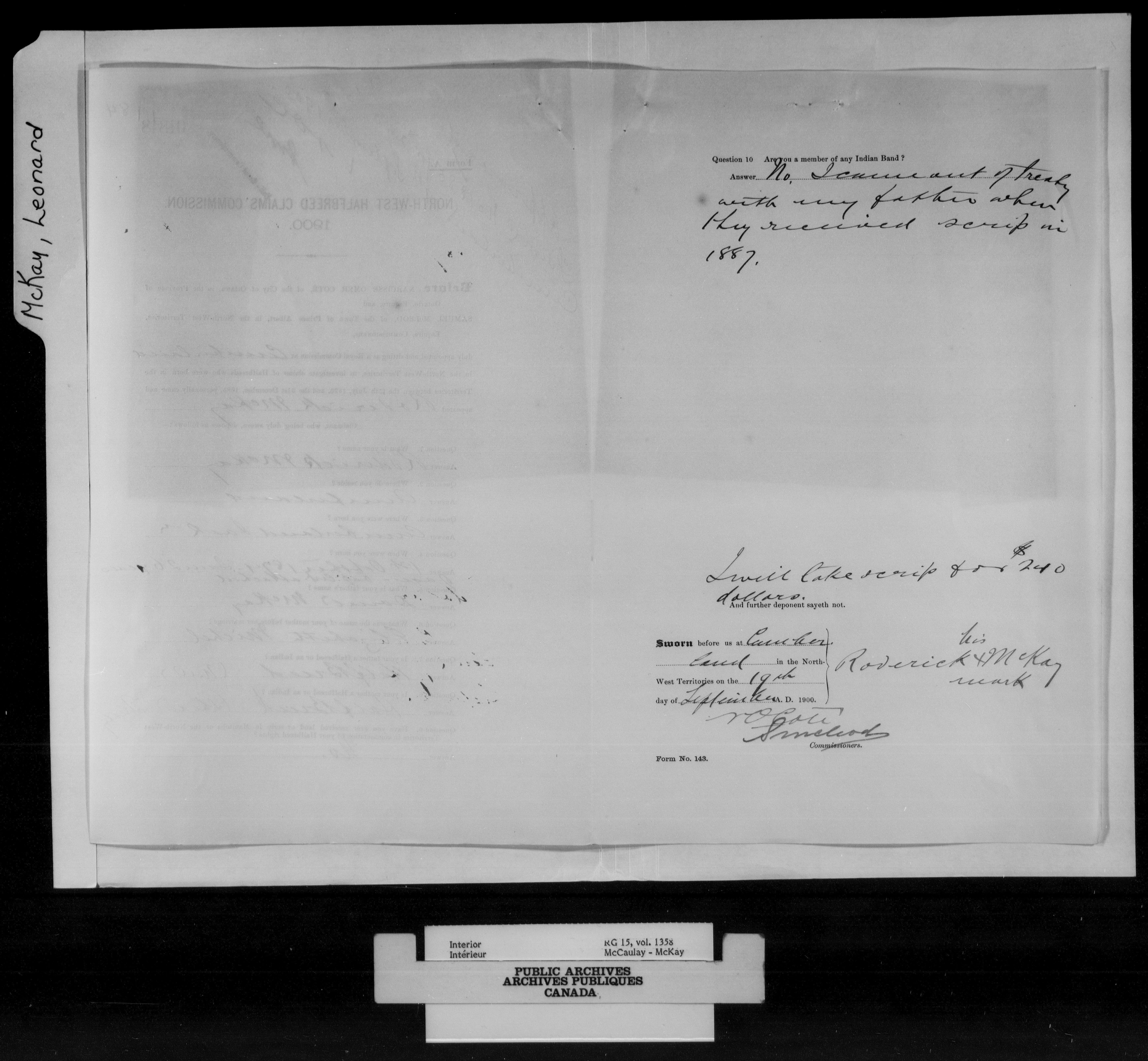 Department of the Interior, Dominion Lands Branch : North-West Territories Métis scrip applications - 14988