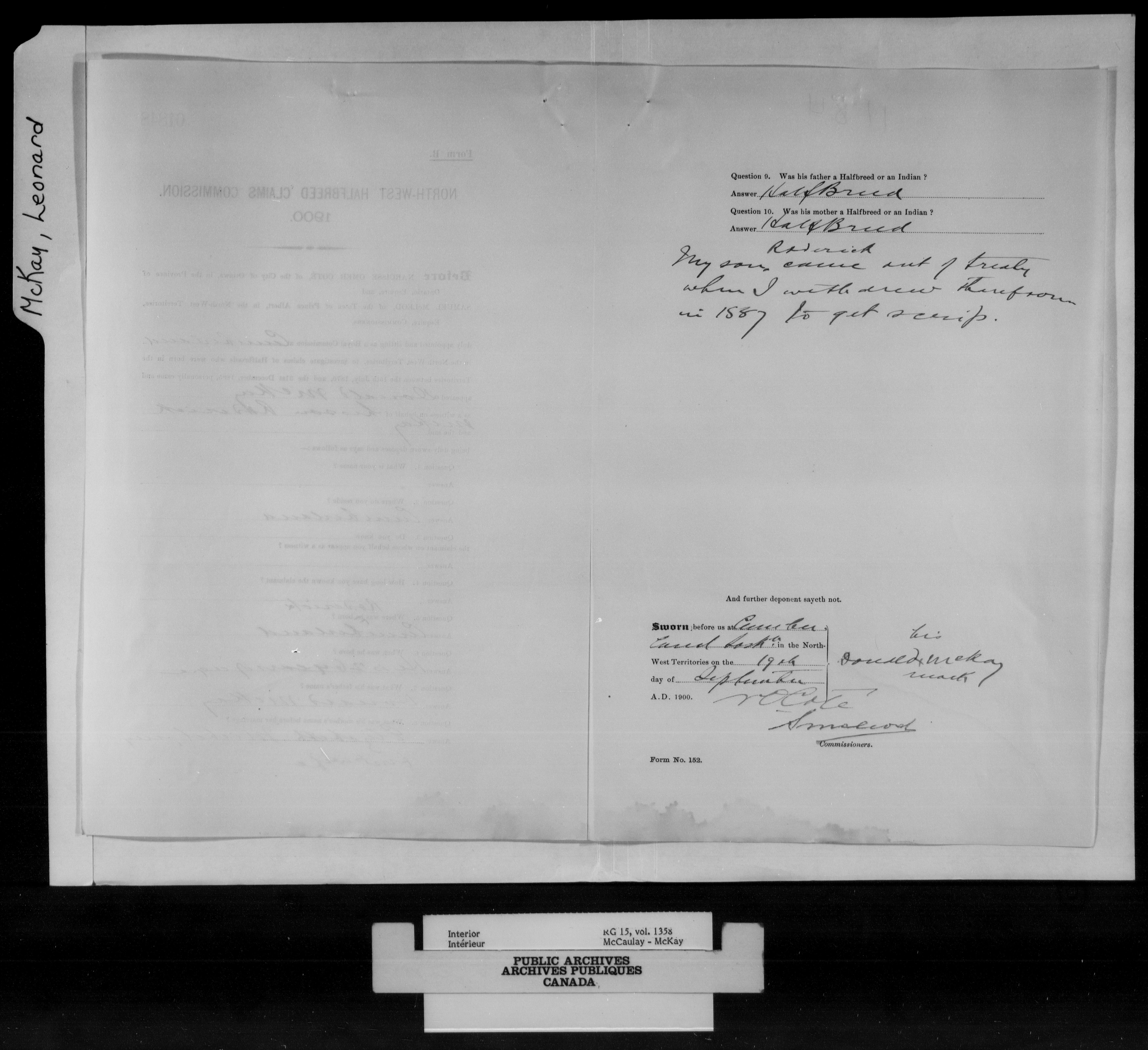 Department of the Interior, Dominion Lands Branch : North-West Territories Métis scrip applications - 14988