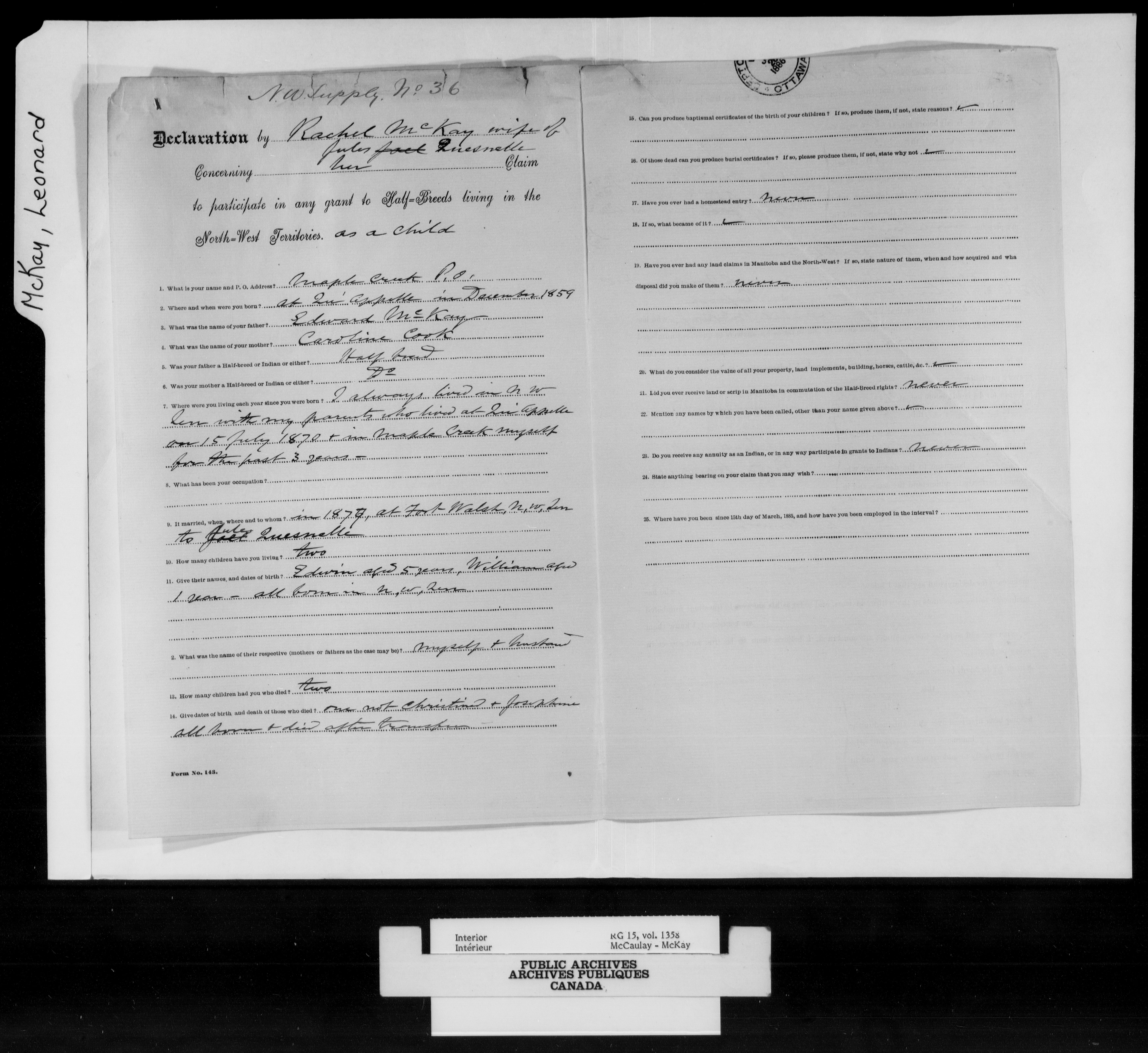 Department of the Interior, Dominion Lands Branch : North-West Territories Métis scrip applications - 14988