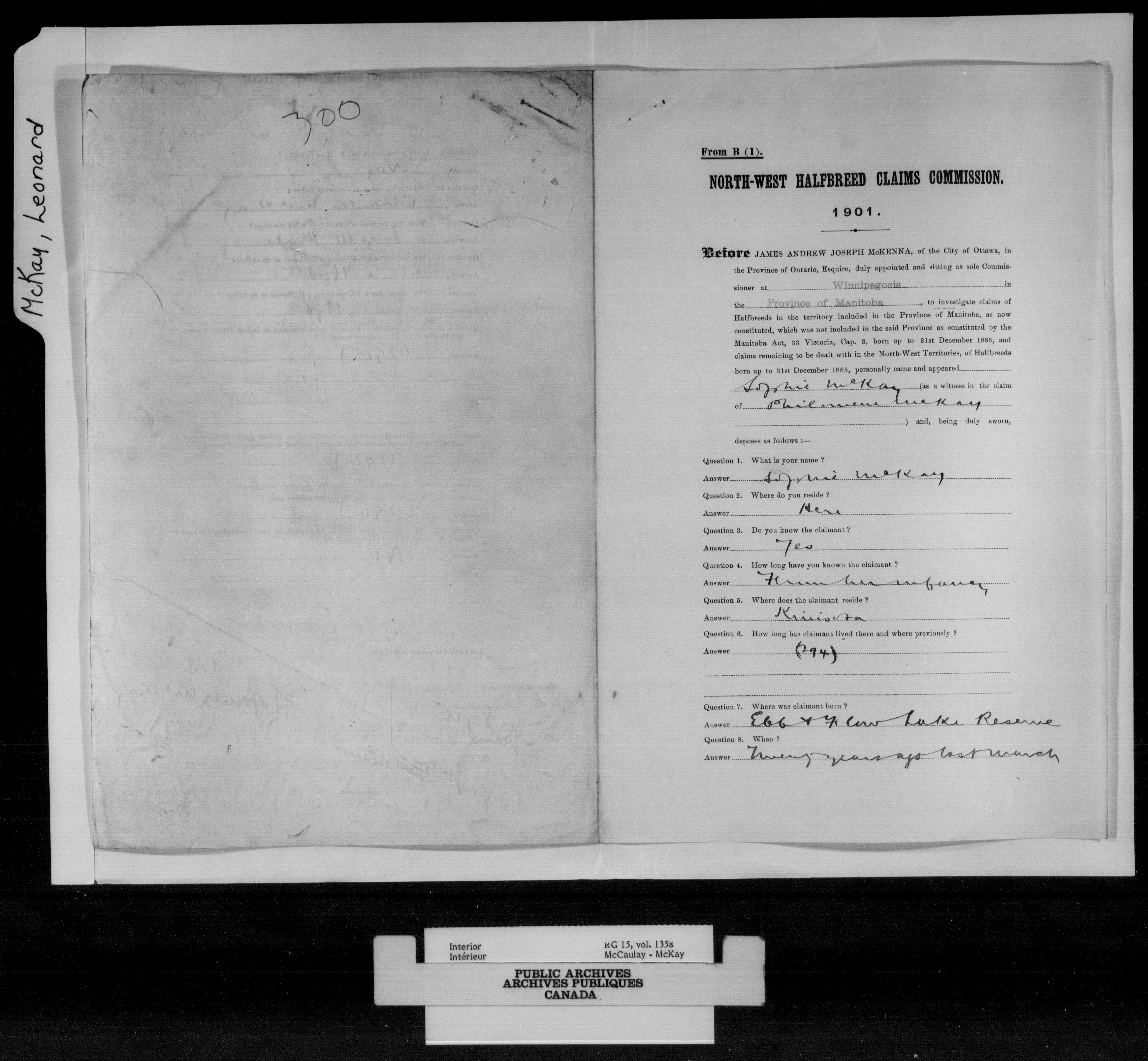 Department of the Interior, Dominion Lands Branch : North-West Territories Métis scrip applications : C-14988
