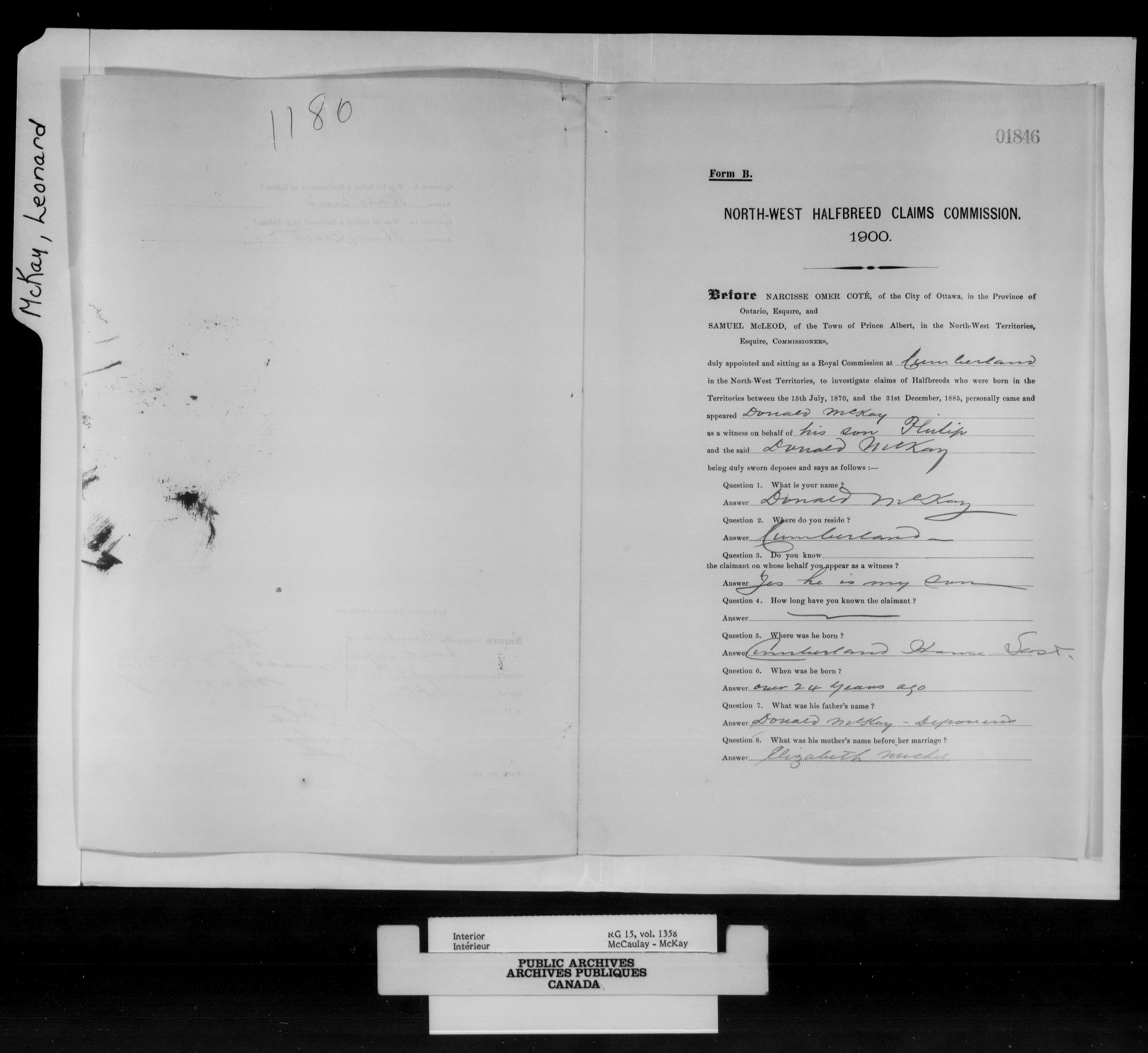 Department of the Interior, Dominion Lands Branch : North-West Territories Métis scrip applications : C-14988