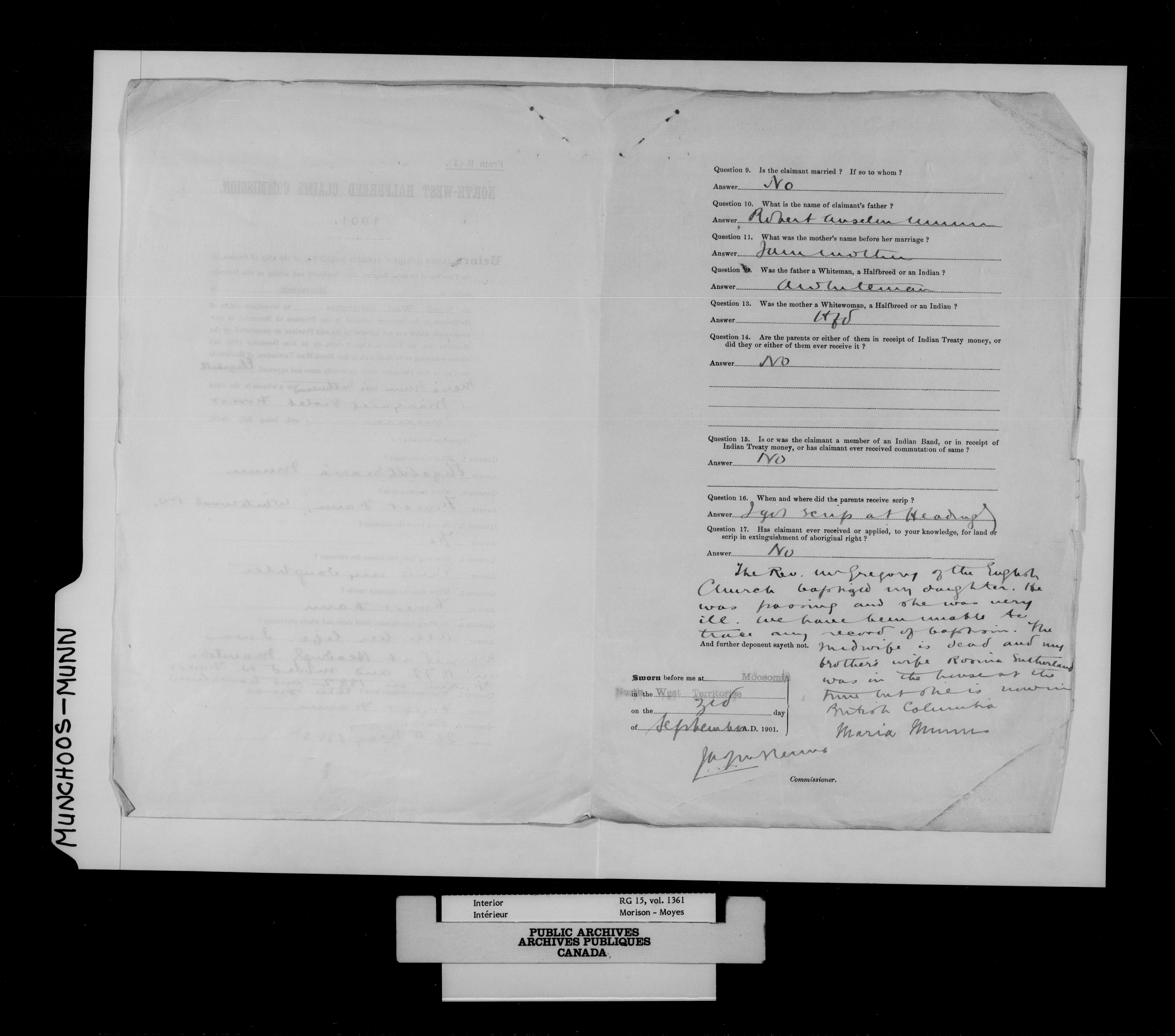 Department of the Interior, Dominion Lands Branch : North-West Territories Métis scrip applications : C-14992
