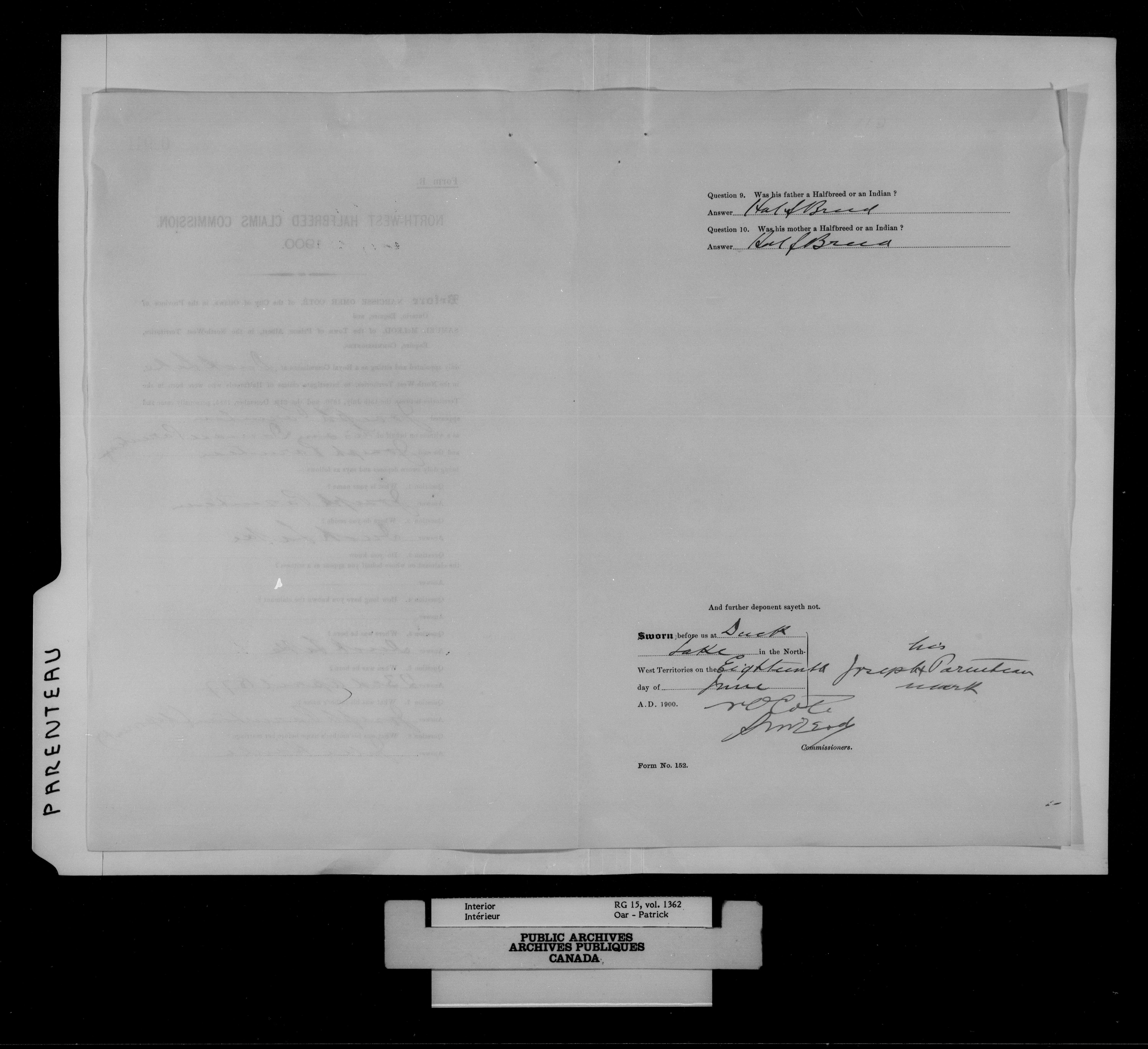Department of the Interior, Dominion Lands Branch : North-West Territories Métis scrip applications - 14995