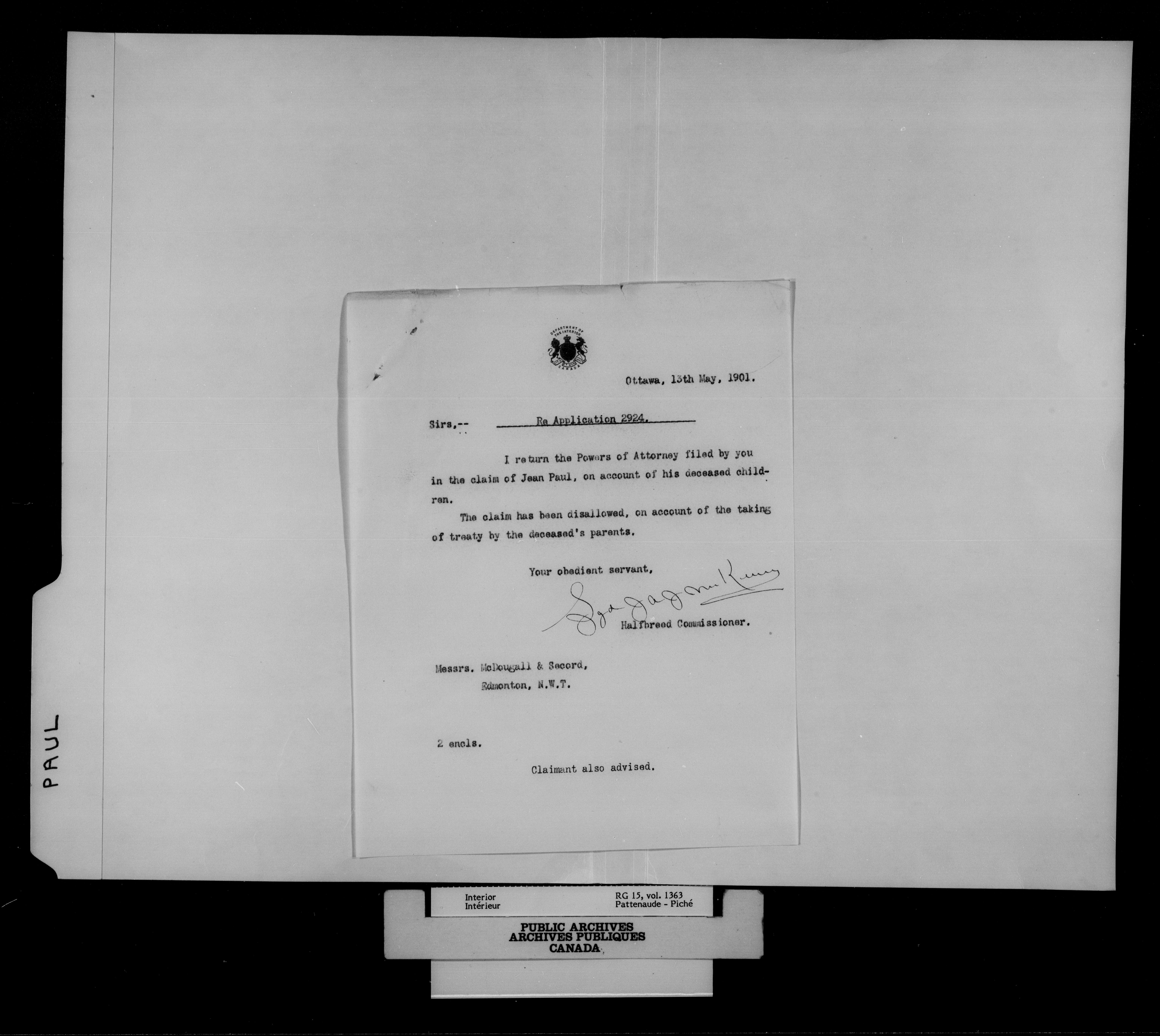 Department of the Interior, Dominion Lands Branch : North-West Territories Métis scrip applications - 14995
