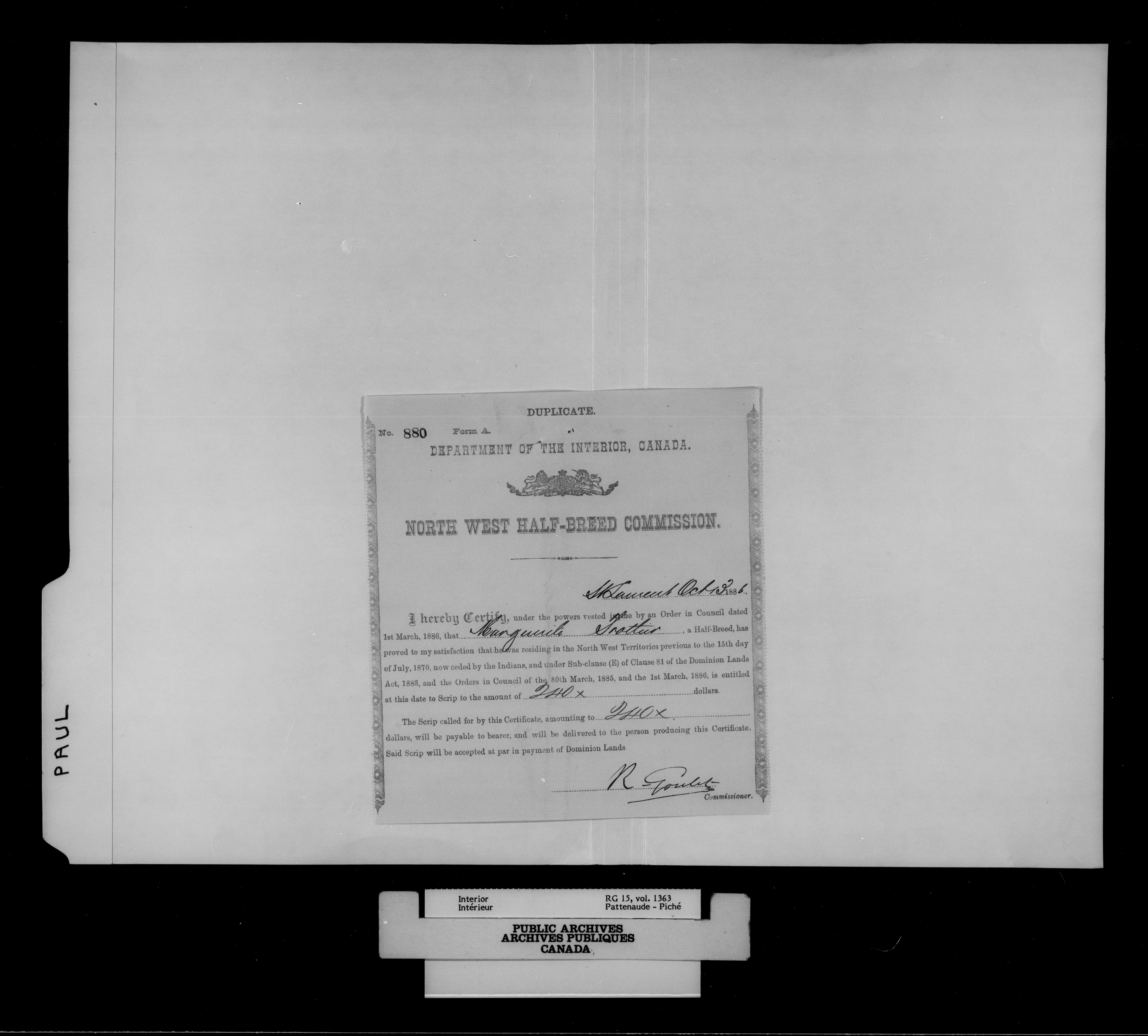 Department of the Interior, Dominion Lands Branch : North-West Territories Métis scrip applications - 14996