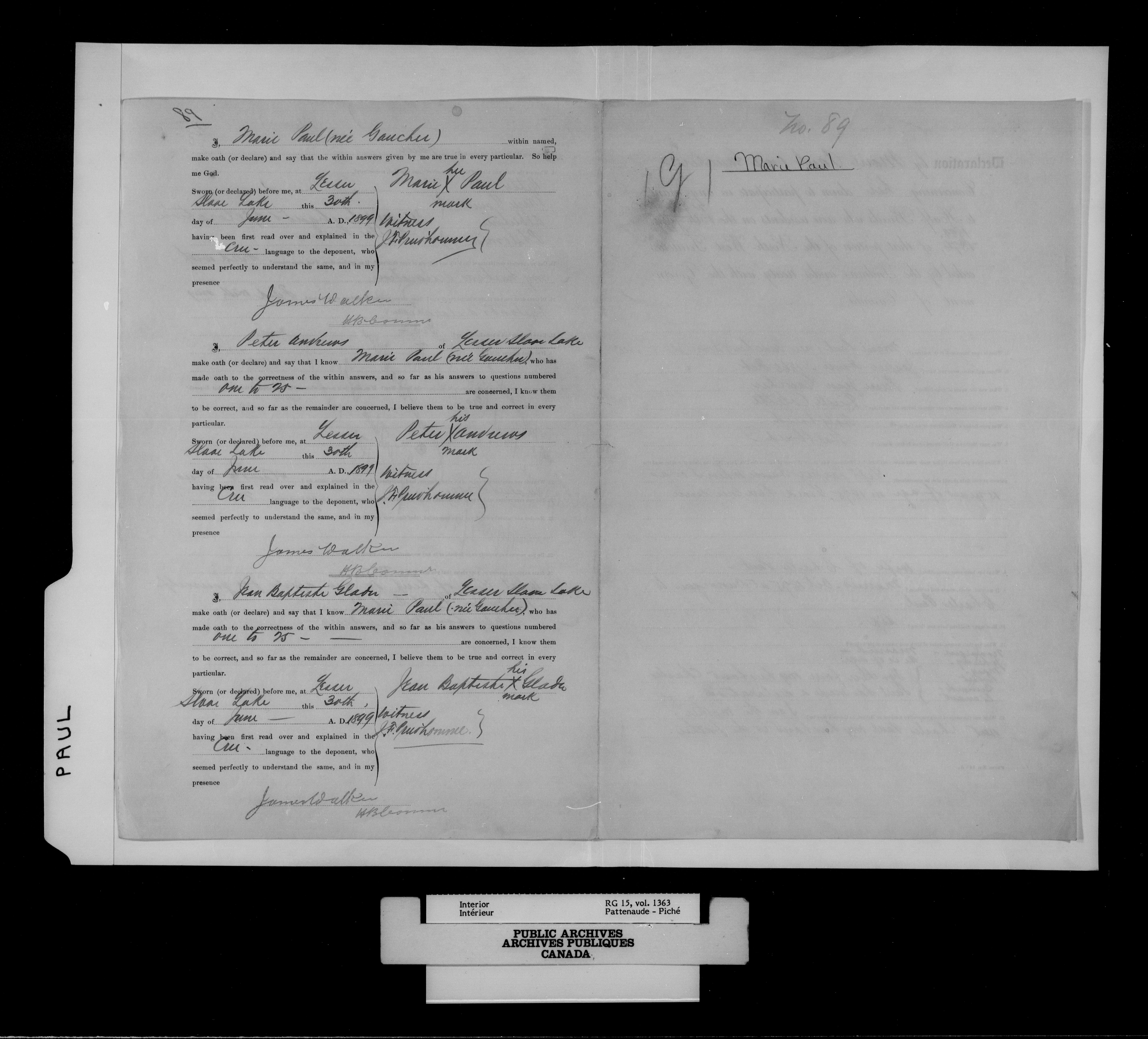 Department of the Interior, Dominion Lands Branch : North-West Territories Métis scrip applications - 14996