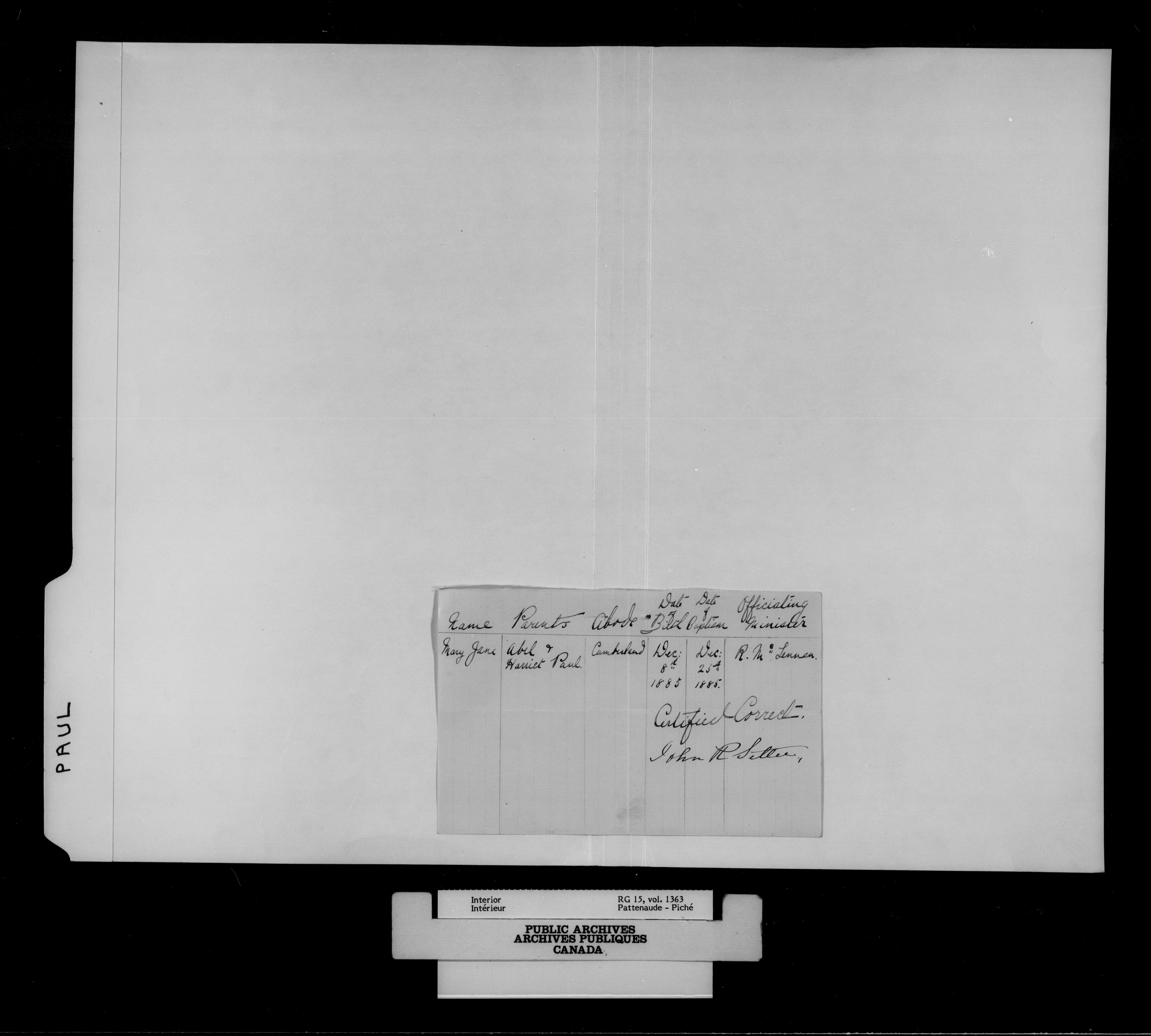 Department of the Interior, Dominion Lands Branch : North-West Territories Métis scrip applications - 14996