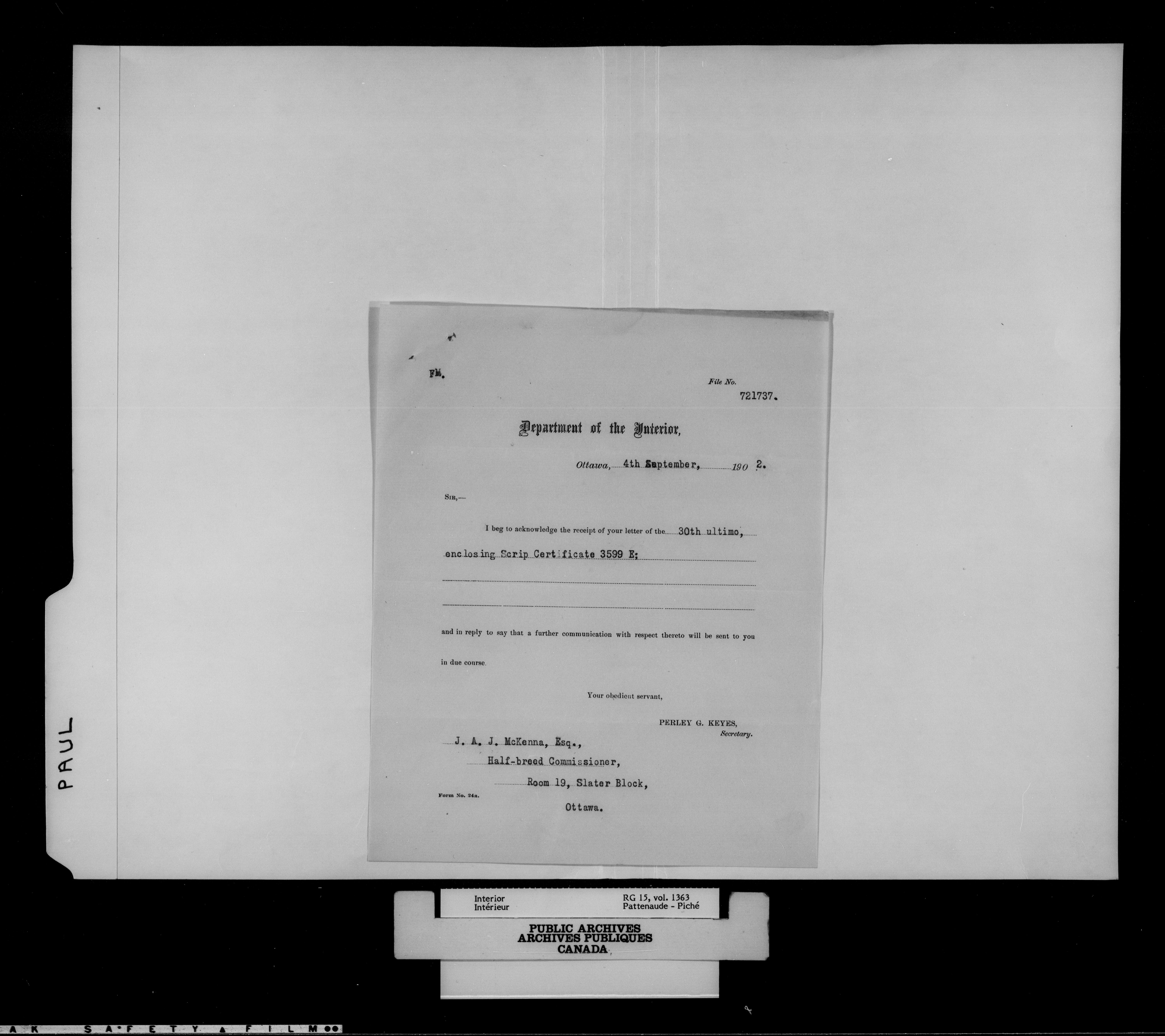 Department of the Interior, Dominion Lands Branch : North-West Territories Métis scrip applications : C-14996