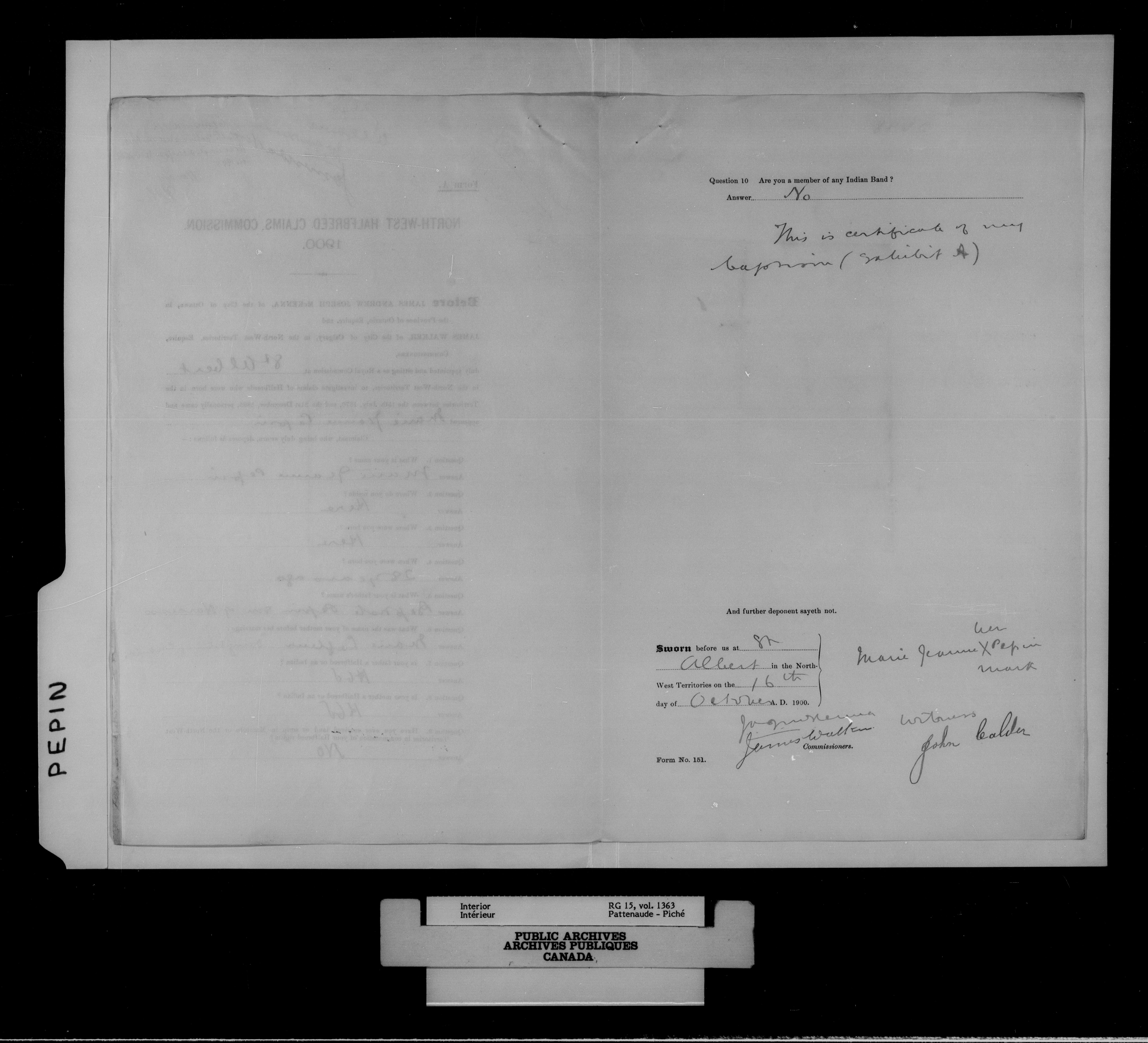Department of the Interior, Dominion Lands Branch : North-West Territories Métis scrip applications - 14997