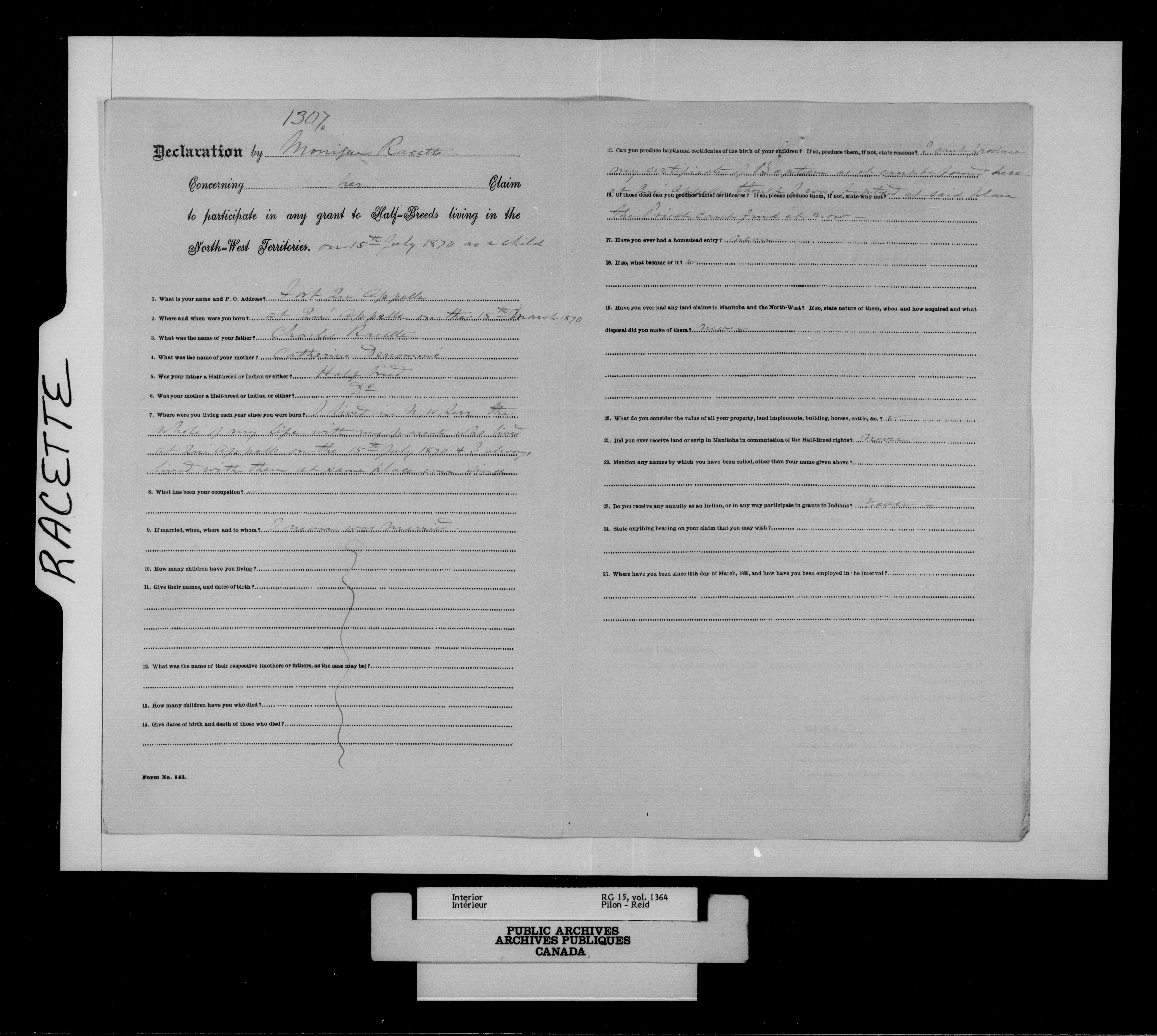 Department of the Interior, Dominion Lands Branch : North-West Territories Métis scrip applications - 14999