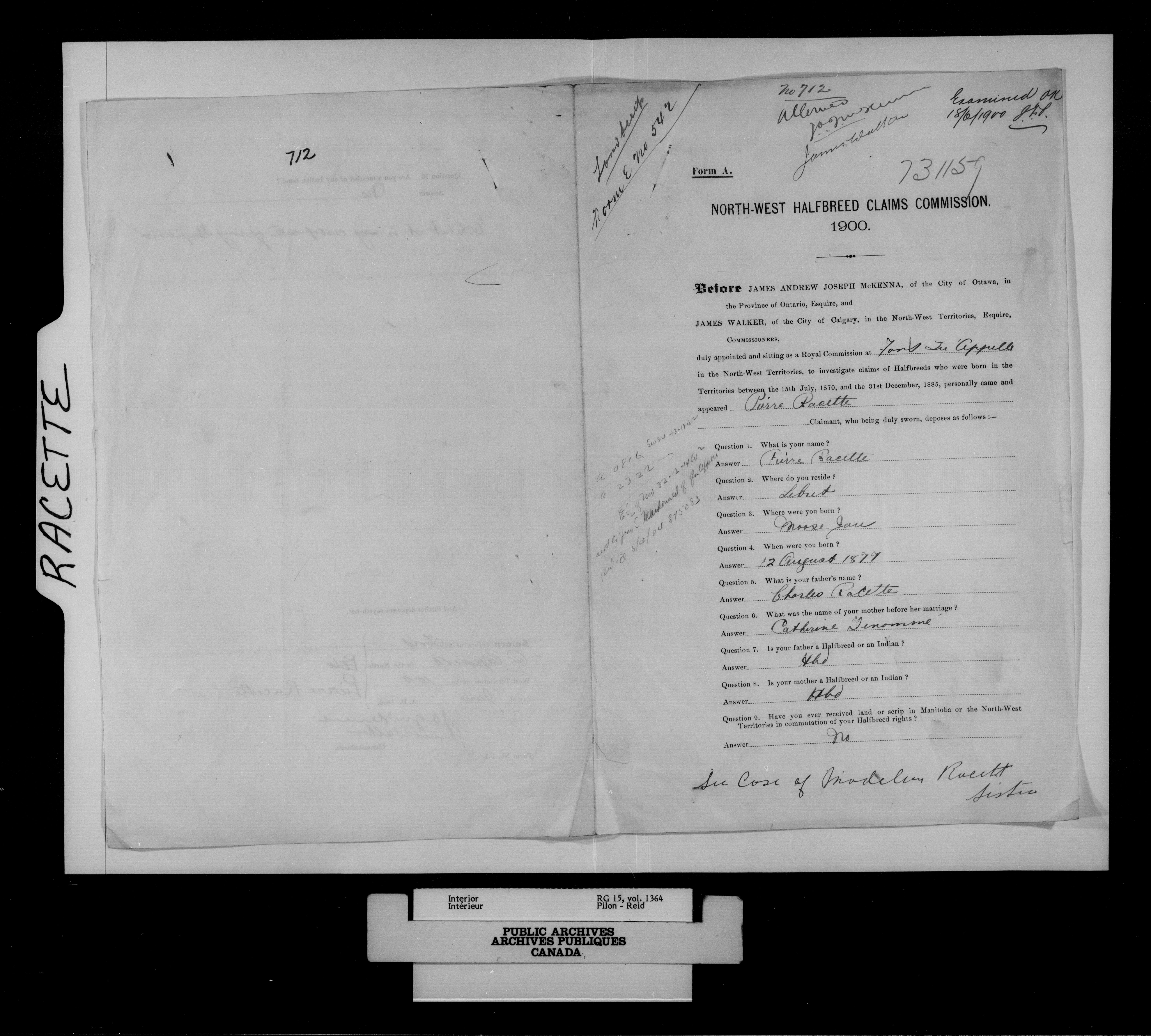 Department of the Interior, Dominion Lands Branch : North-West Territories Métis scrip applications - 14999