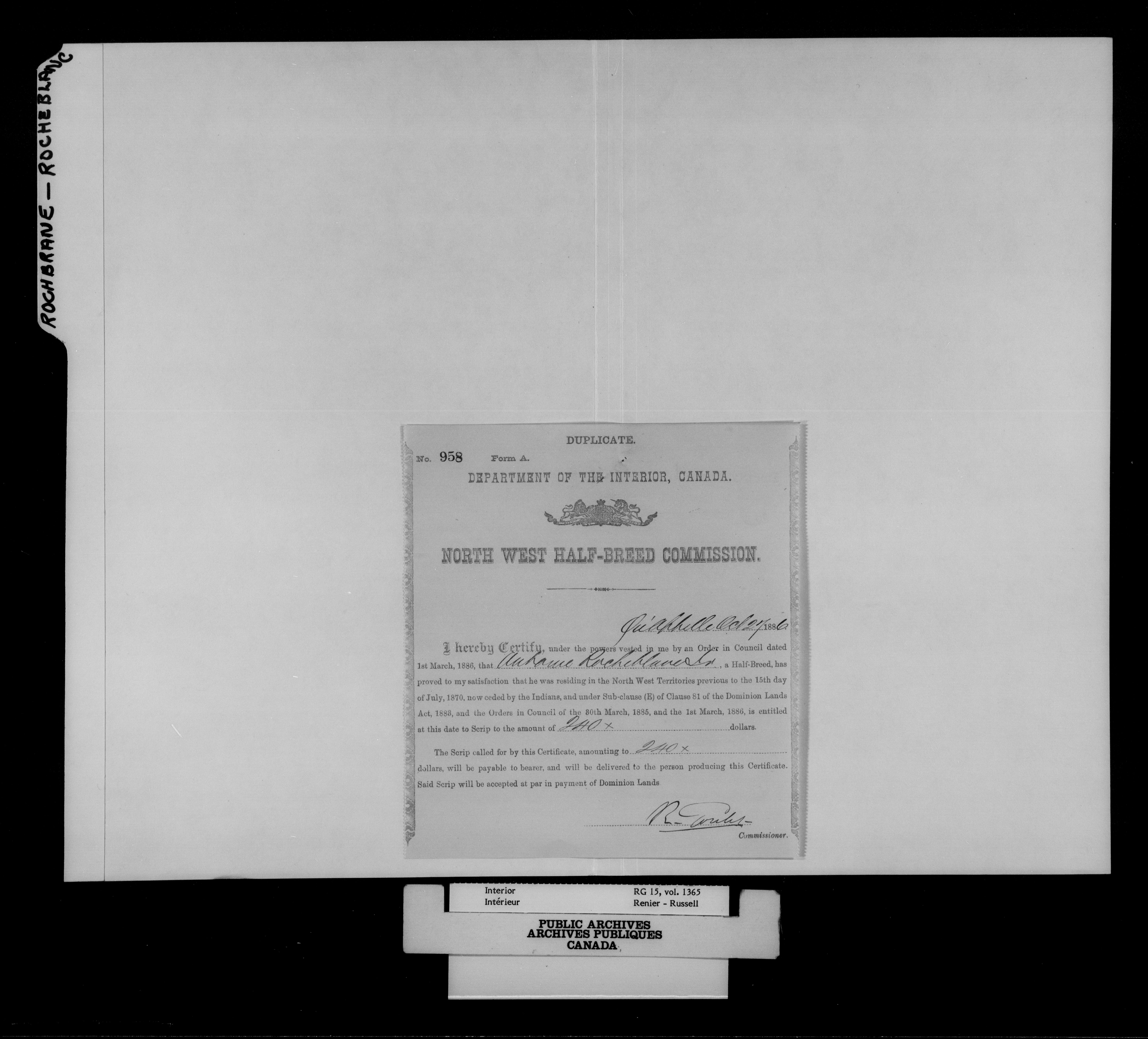 Department of the Interior, Dominion Lands Branch : North-West Territories Métis scrip applications : C-14999