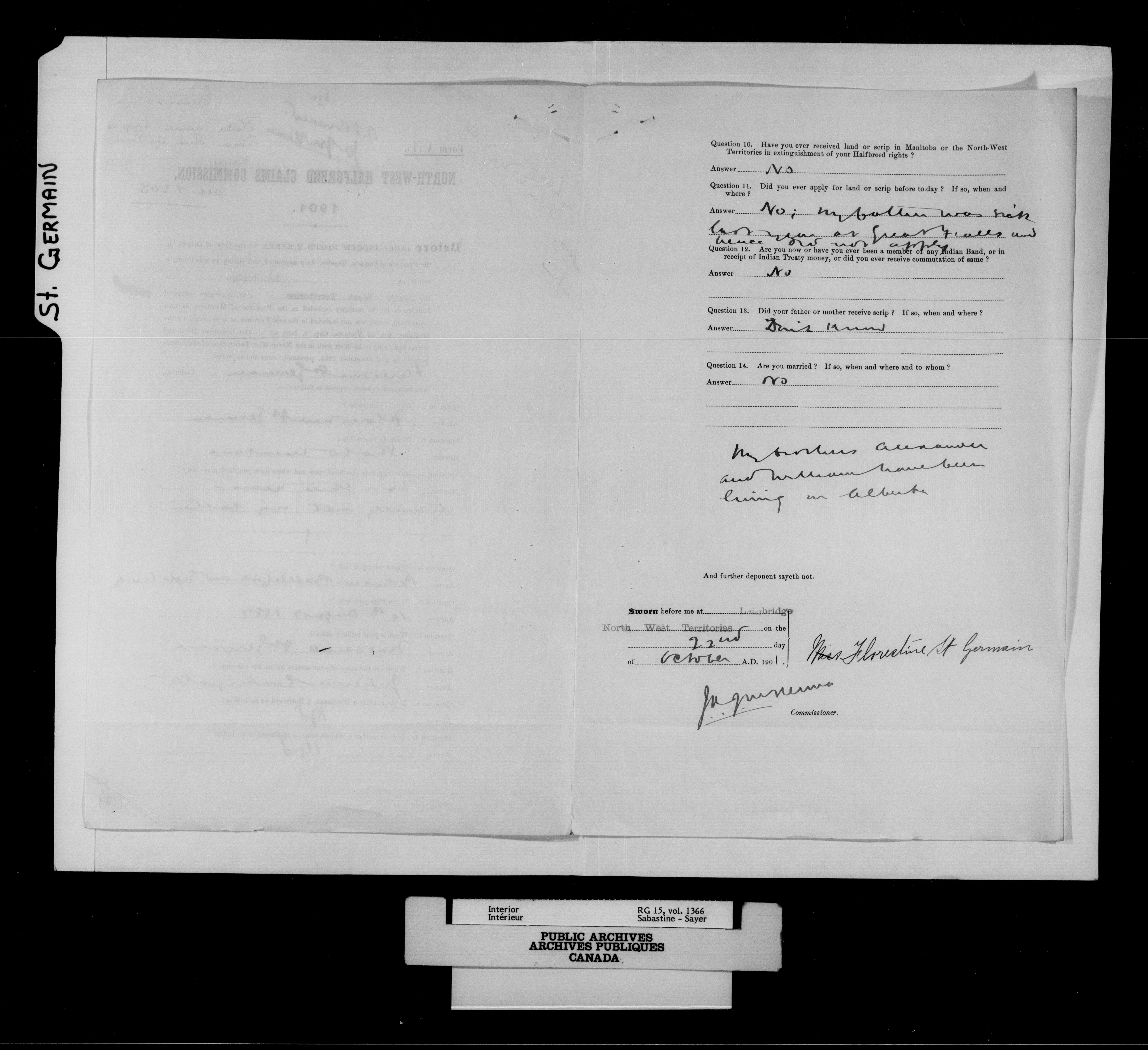 Department of the Interior, Dominion Lands Branch : North-West Territories Métis scrip applications - 15001
