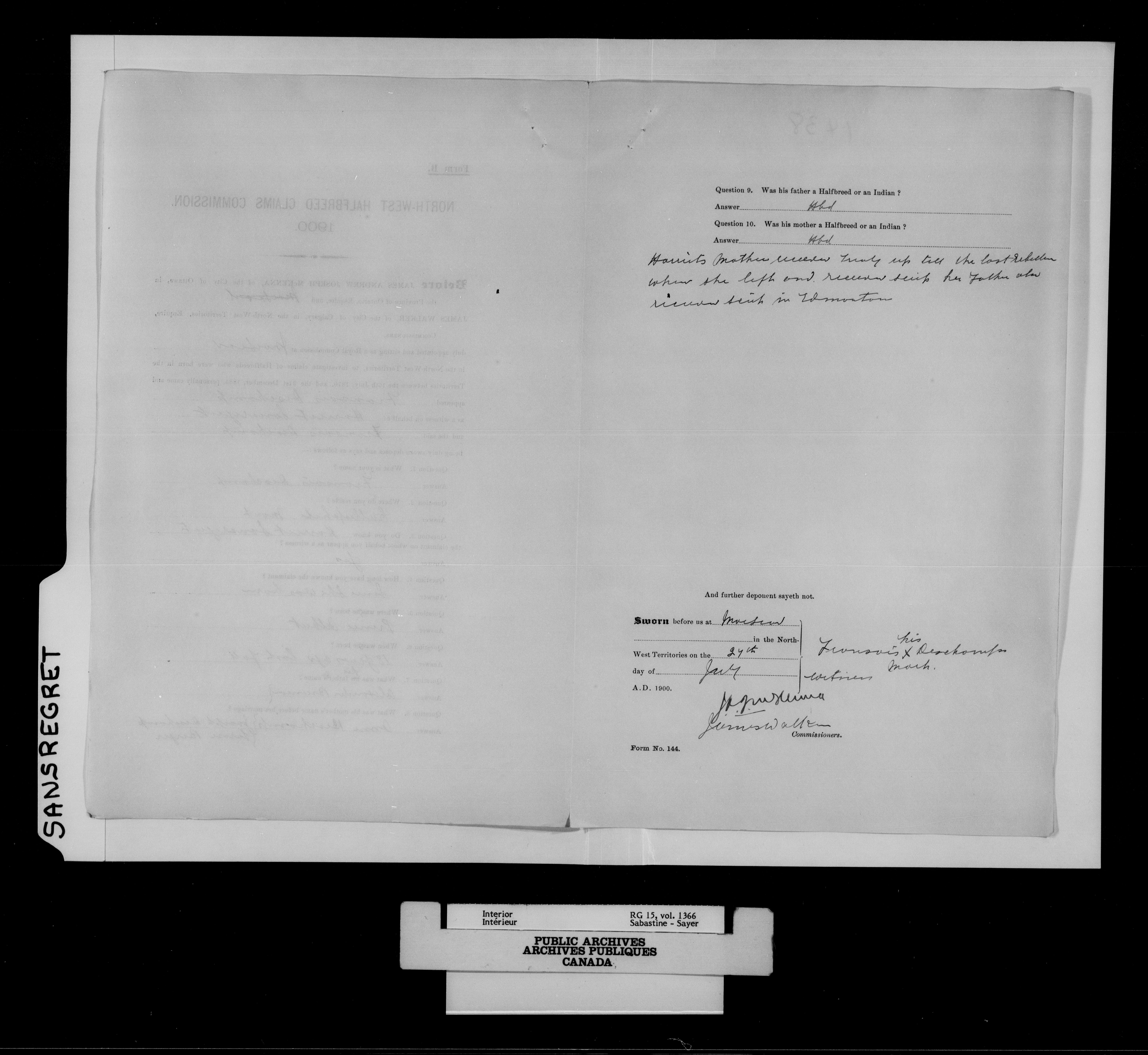 Department of the Interior, Dominion Lands Branch : North-West Territories Métis scrip applications - 15001