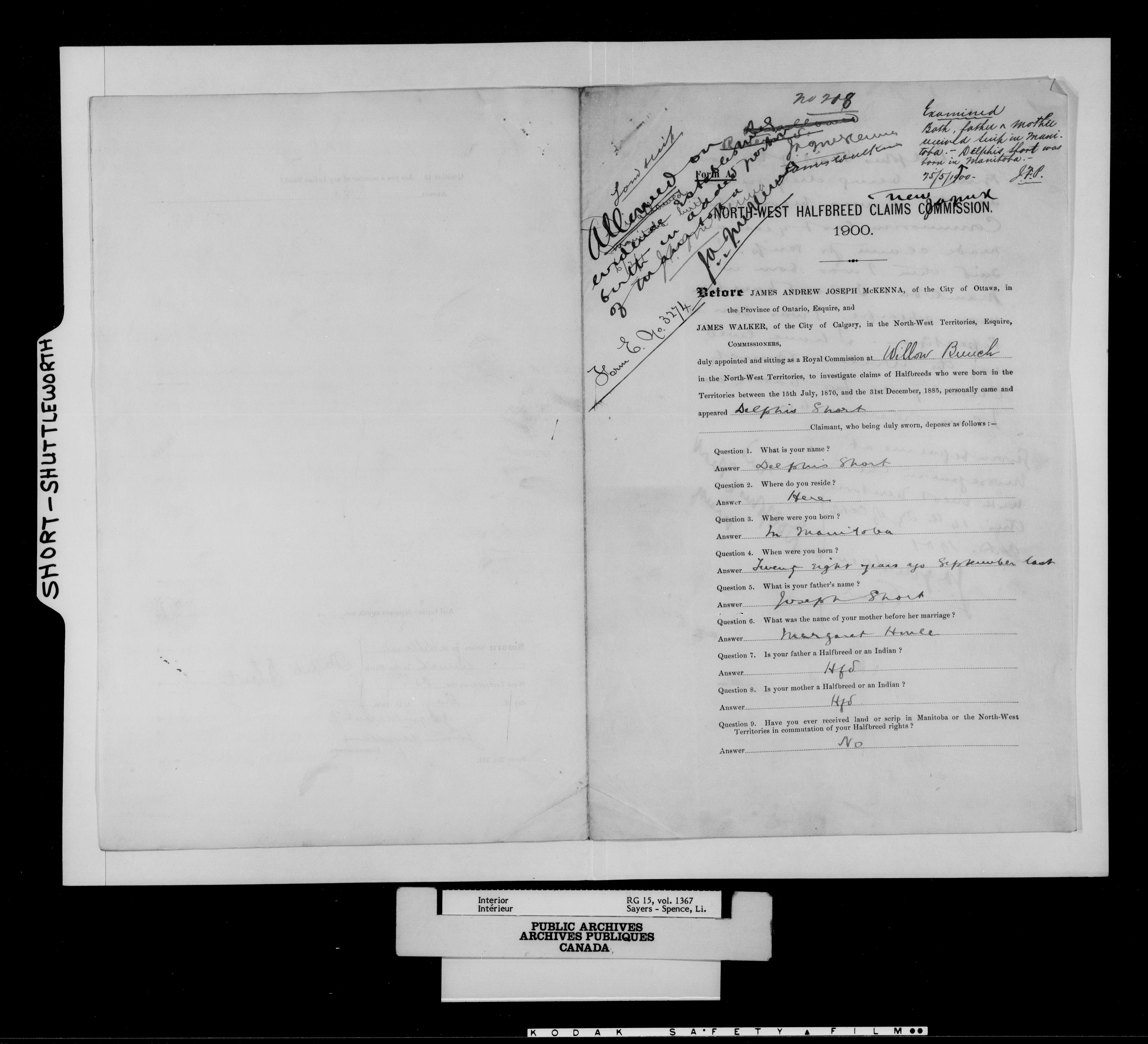 Department of the Interior, Dominion Lands Branch : North-West Territories Métis scrip applications : C-15002