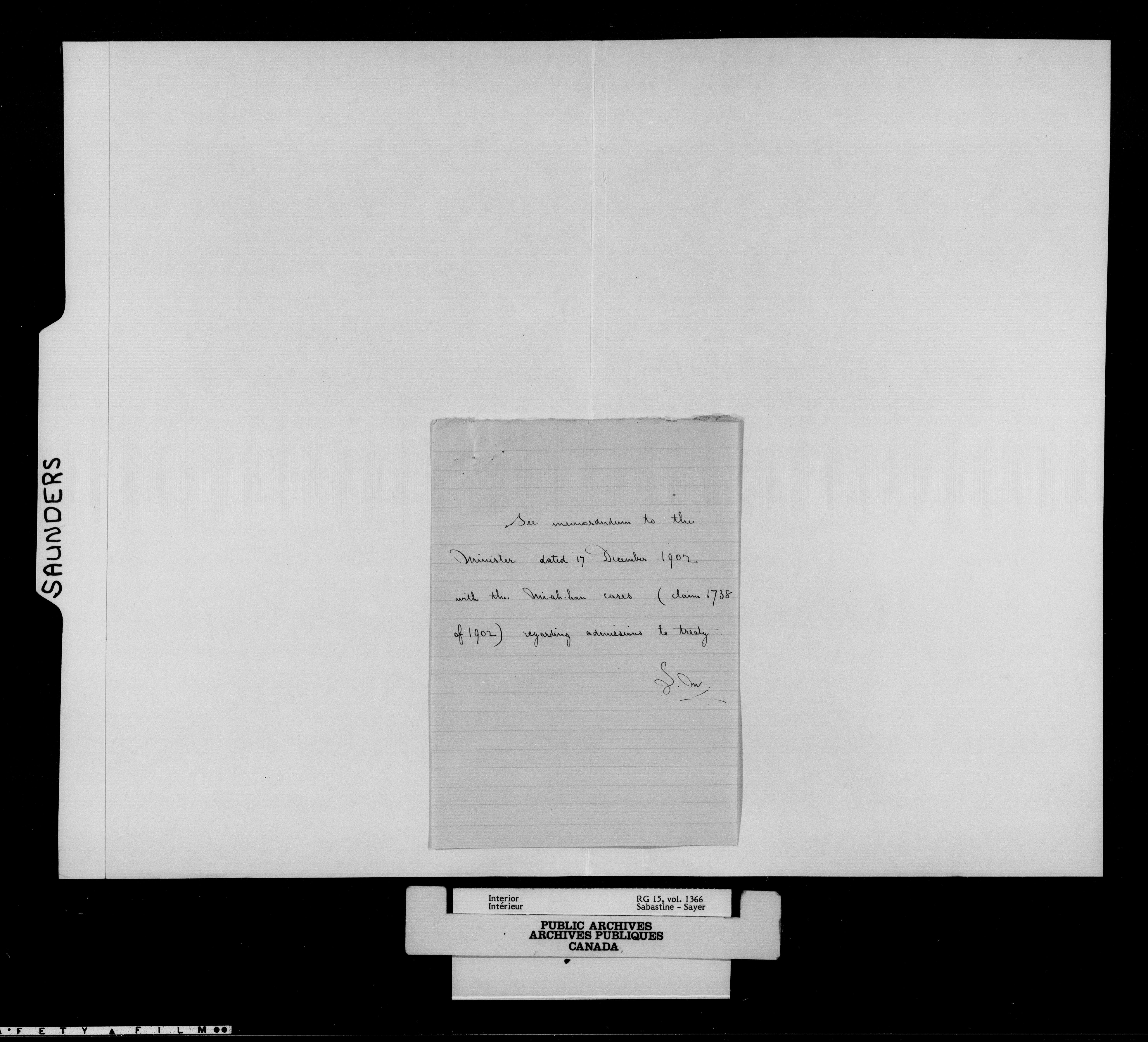Department of the Interior, Dominion Lands Branch : North-West Territories Métis scrip applications : C-15002