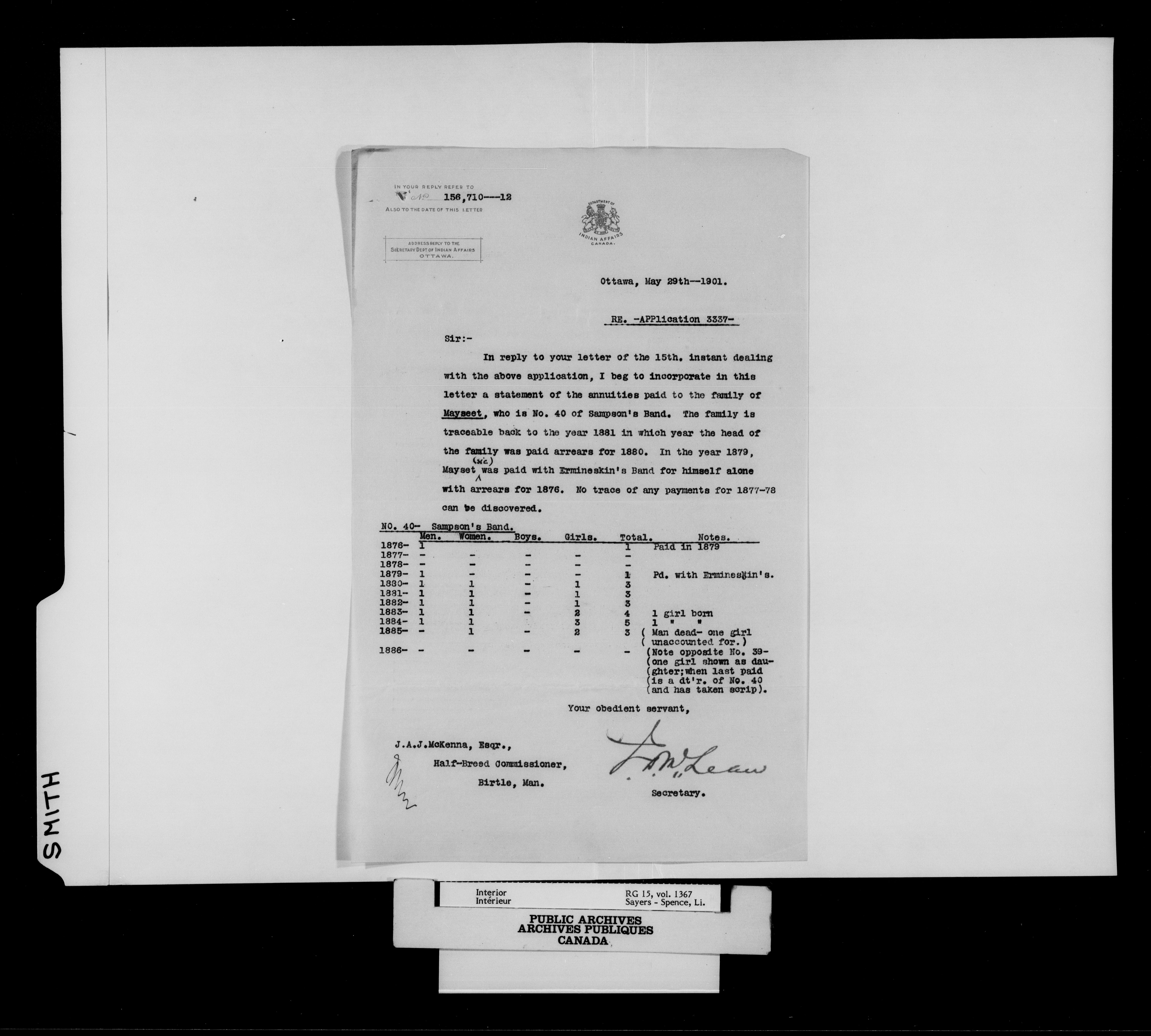 Department of the Interior, Dominion Lands Branch : North-West Territories Métis scrip applications : C-15003