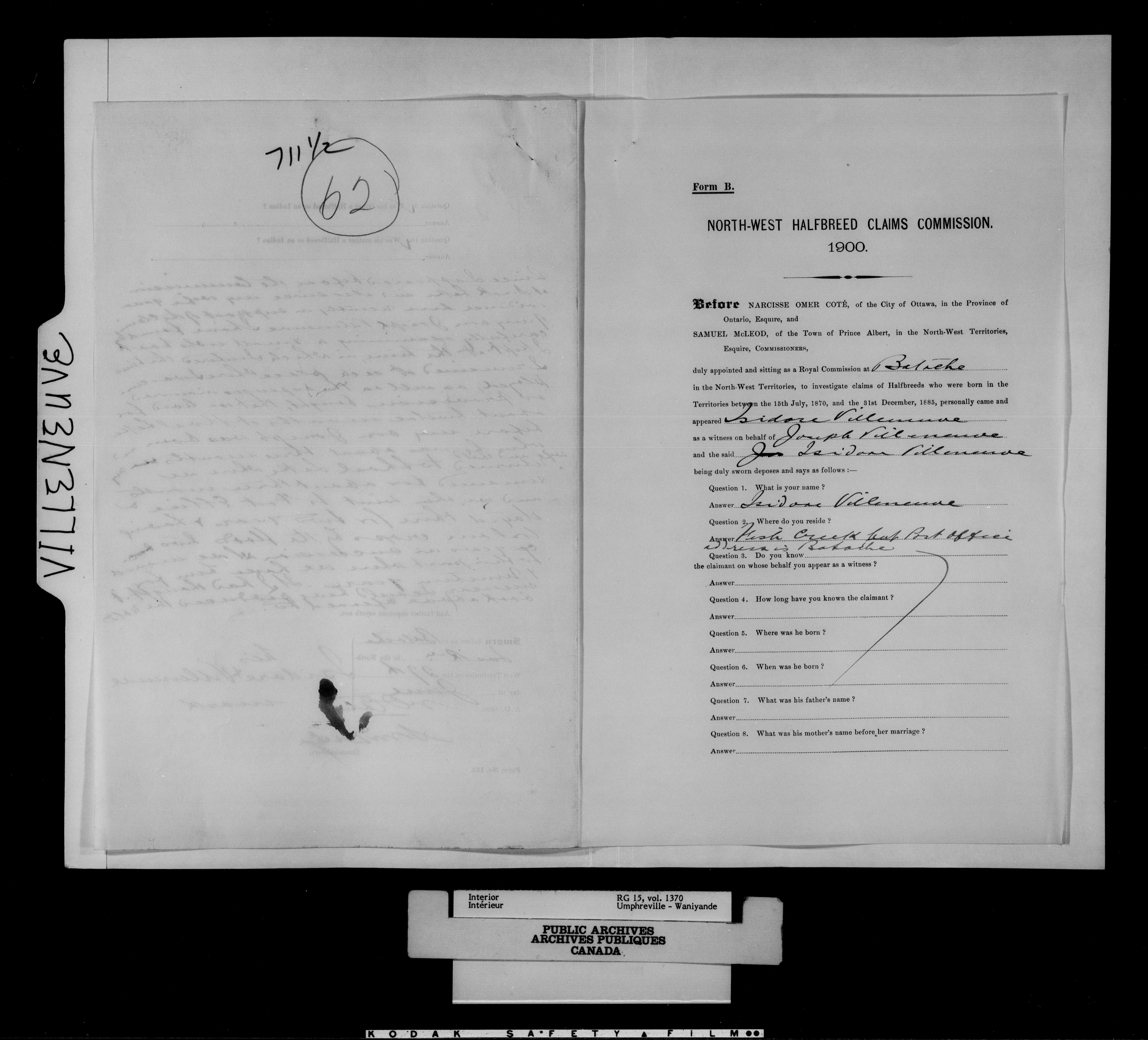 Department of the Interior, Dominion Lands Branch : North-West Territories Métis scrip applications : C-15008