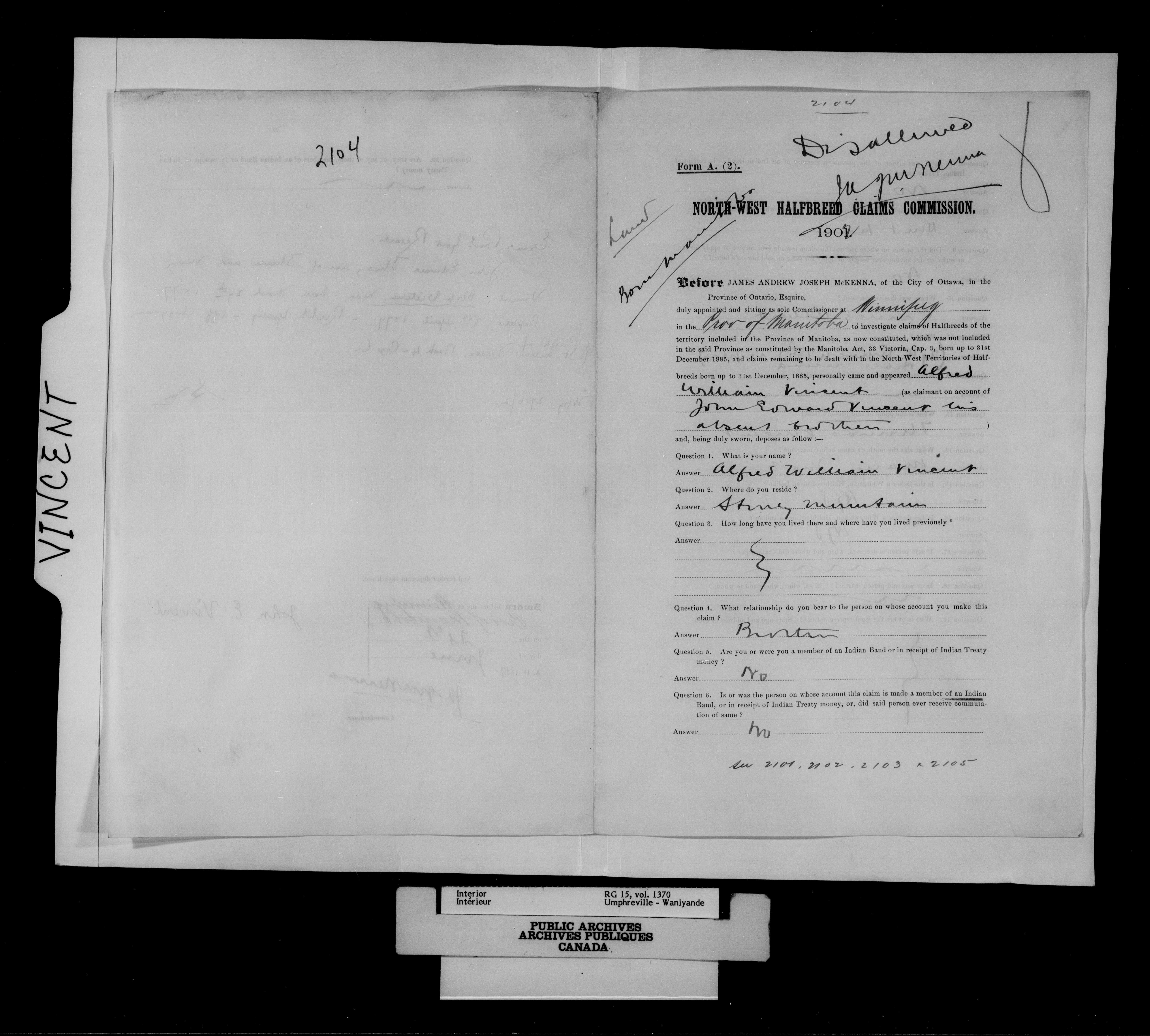 Department of the Interior, Dominion Lands Branch : North-West Territories Métis scrip applications : C-15008