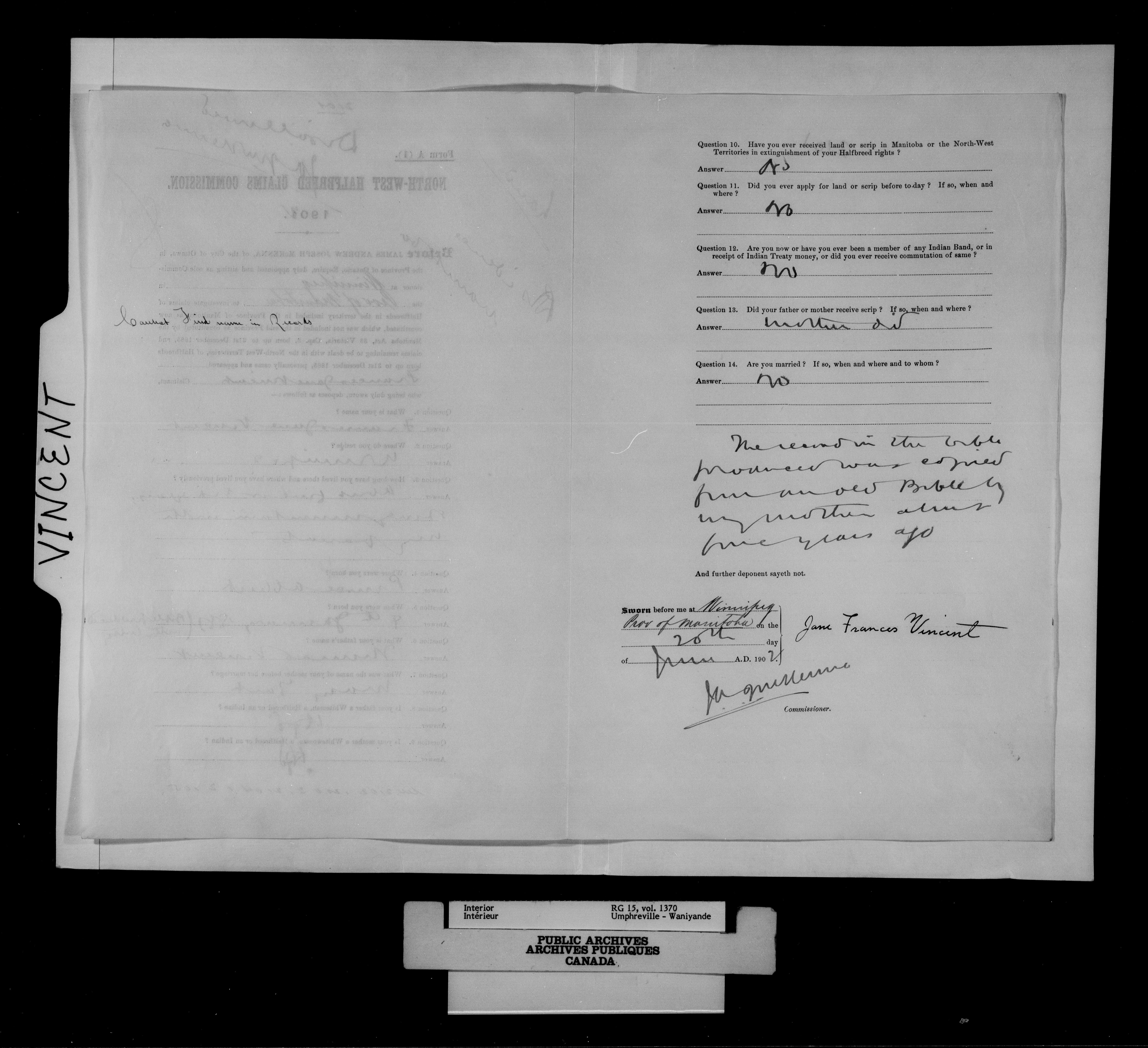 Department of the Interior, Dominion Lands Branch : North-West Territories Métis scrip applications : C-15008