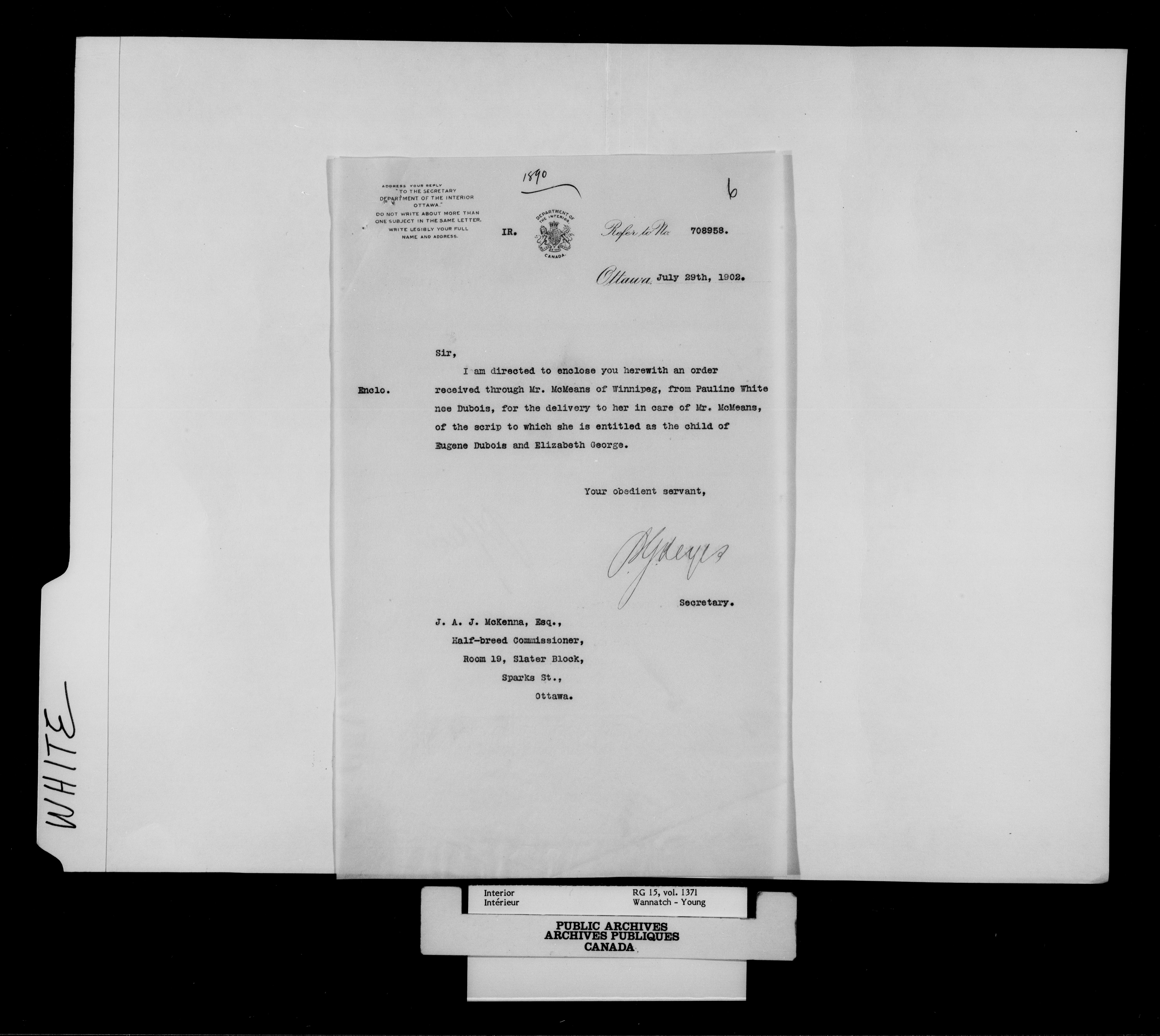 Department of the Interior, Dominion Lands Branch : North-West Territories Métis scrip applications : C-15009