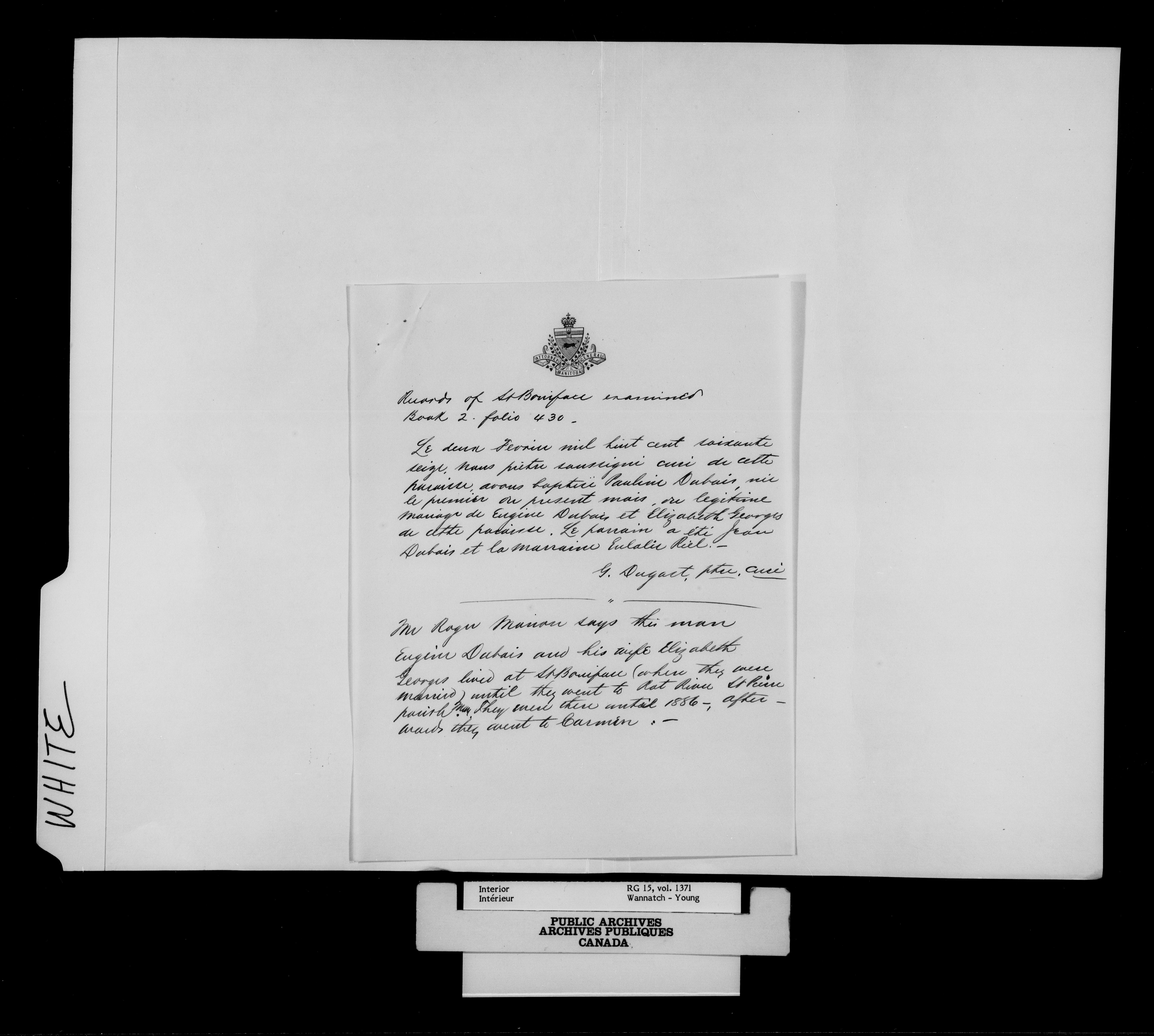 Department of the Interior, Dominion Lands Branch : North-West Territories Métis scrip applications : C-15009