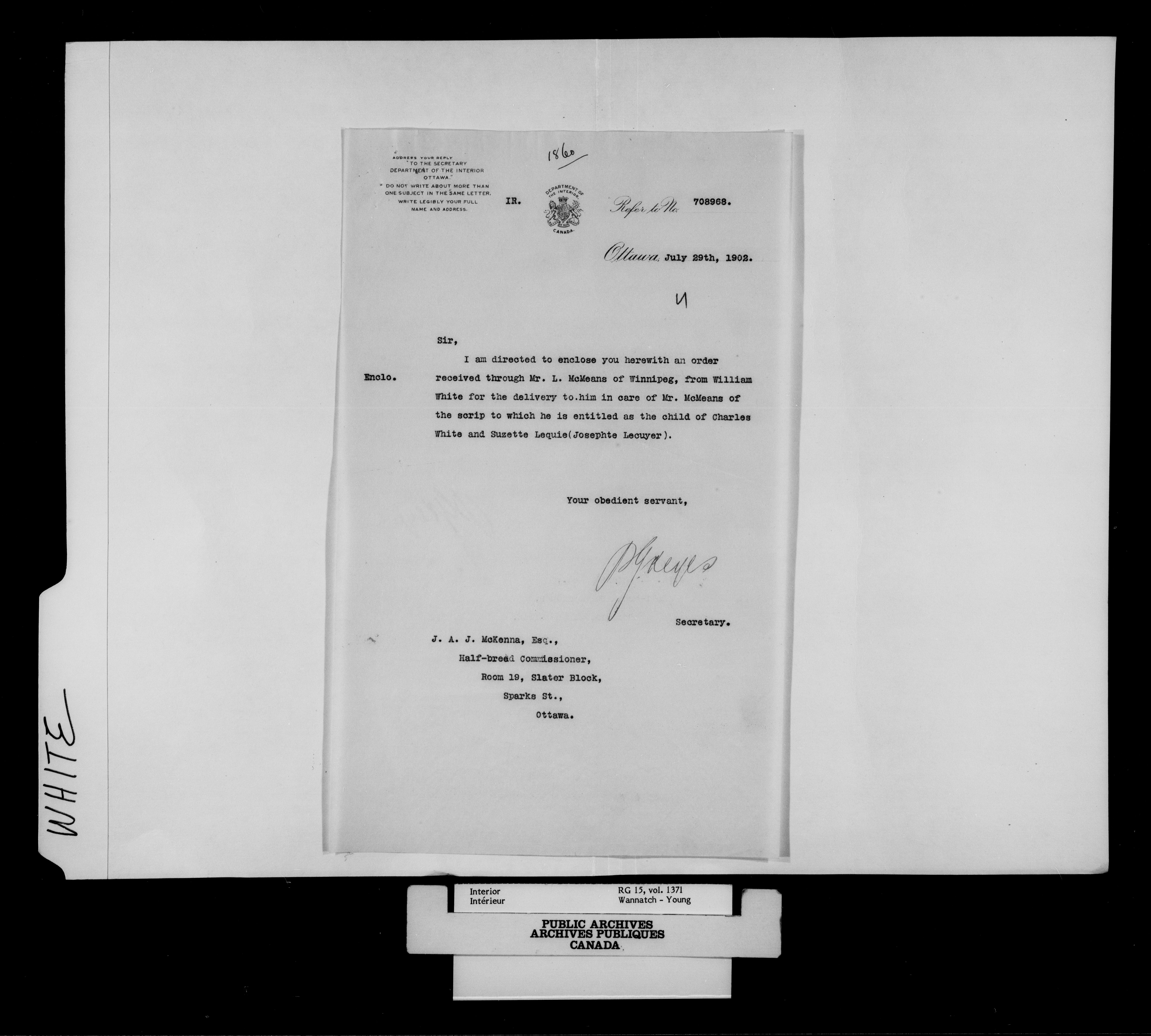 Department of the Interior, Dominion Lands Branch : North-West Territories Métis scrip applications : C-15009
