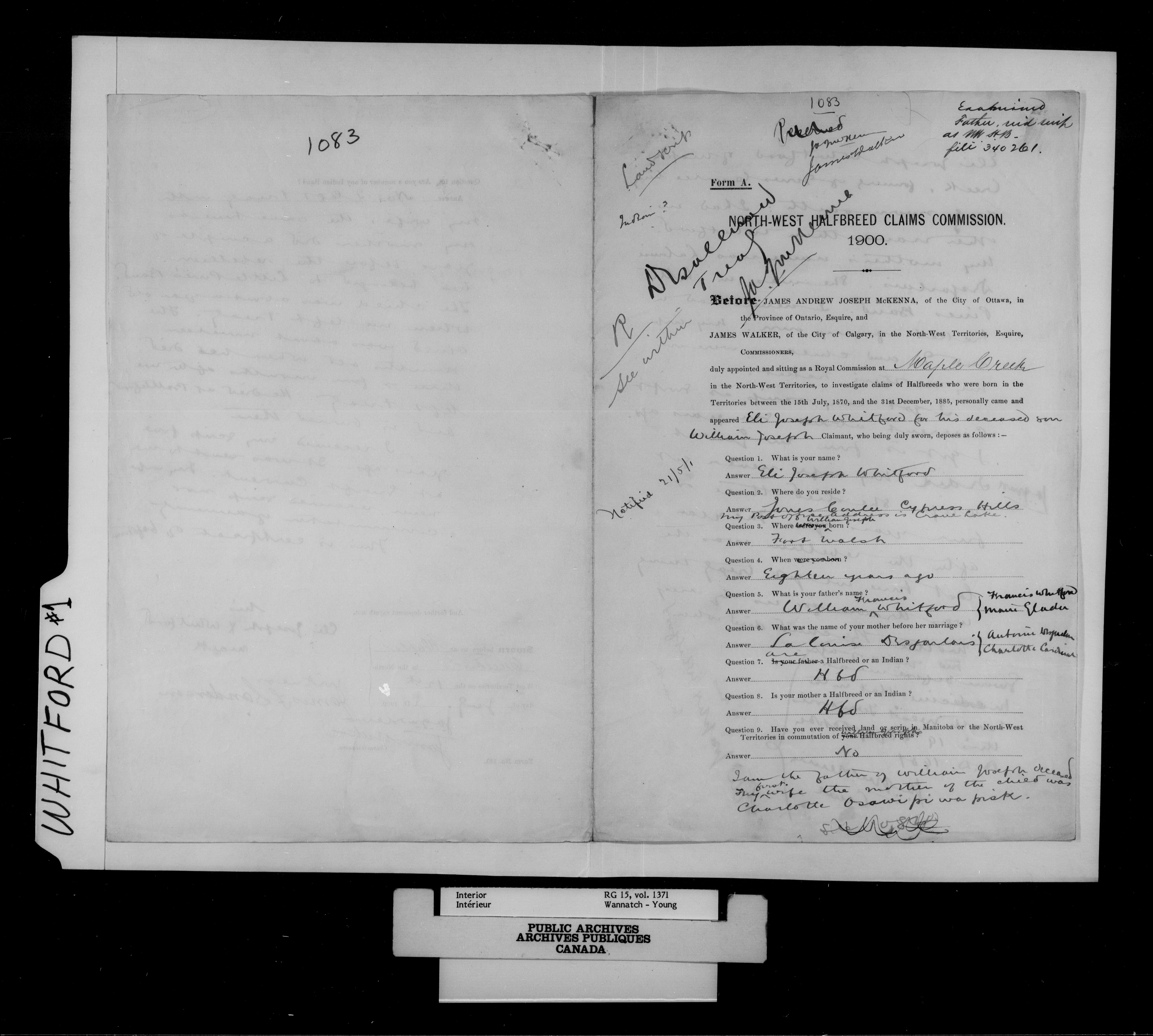 Department of the Interior, Dominion Lands Branch : North-West Territories Métis scrip applications - 15010