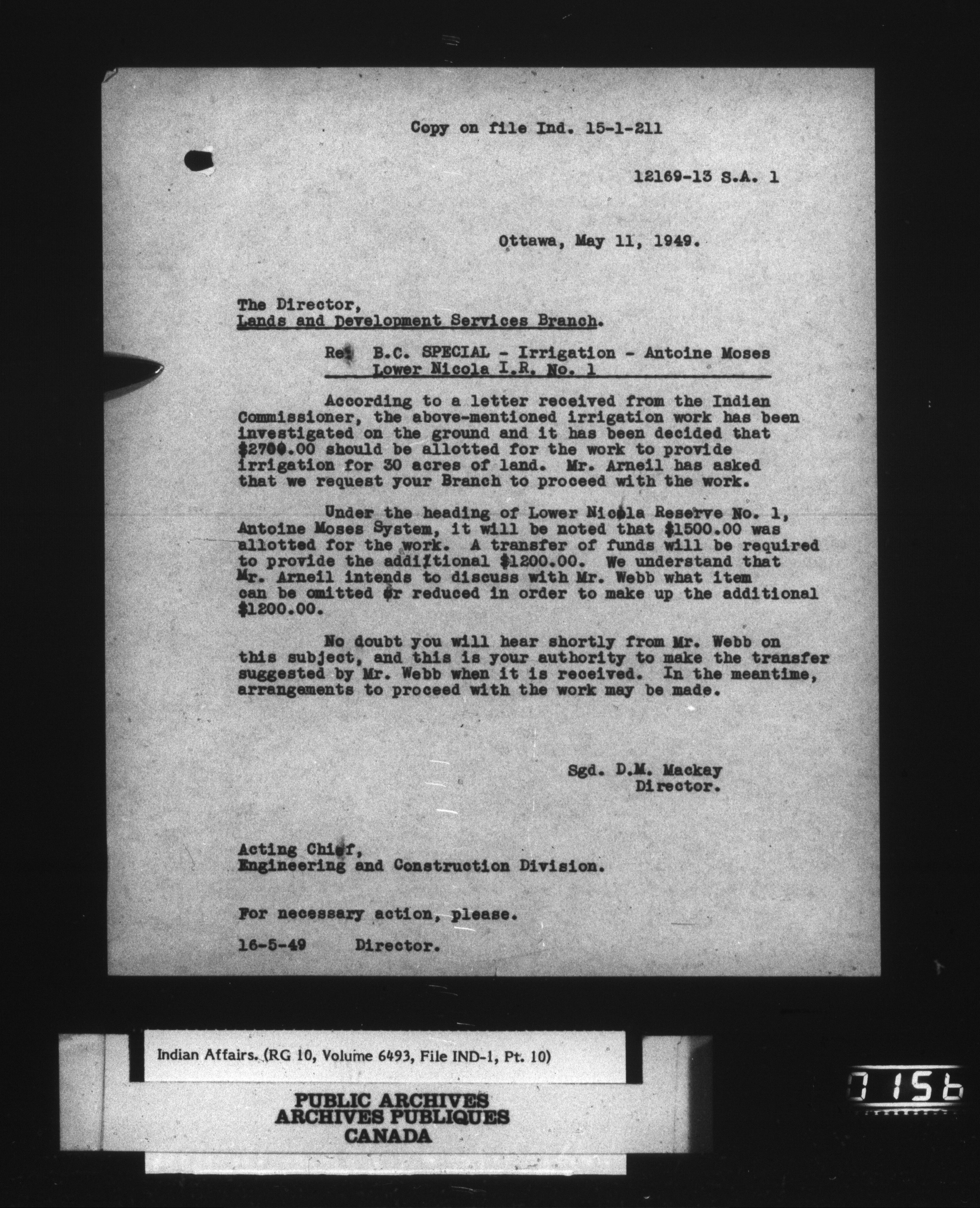 Department of Indian Affairs, Headquarters central registry system : engineering and construction files series - 15033