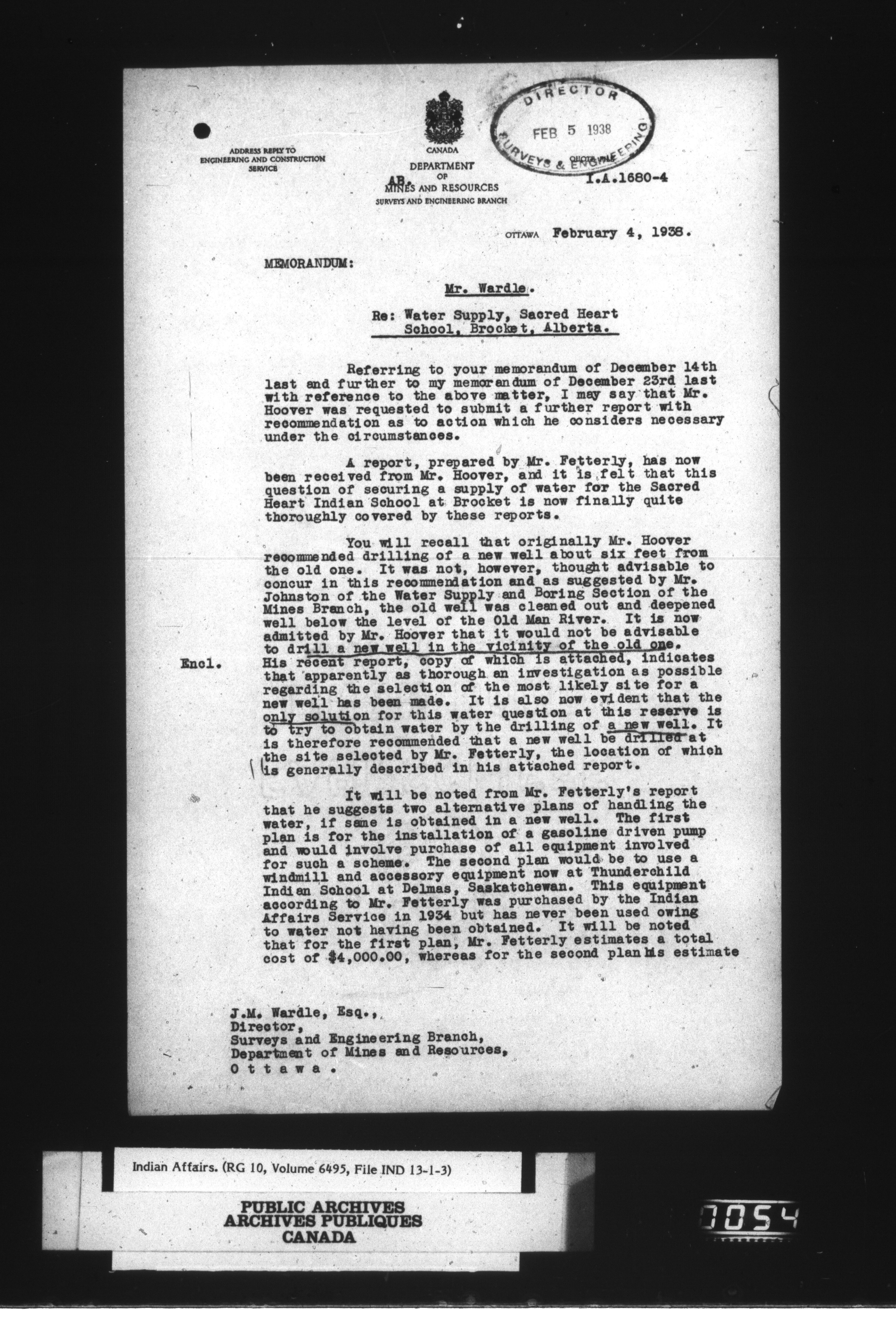 Department of Indian Affairs, Headquarters central registry system : engineering and construction files series - 15035