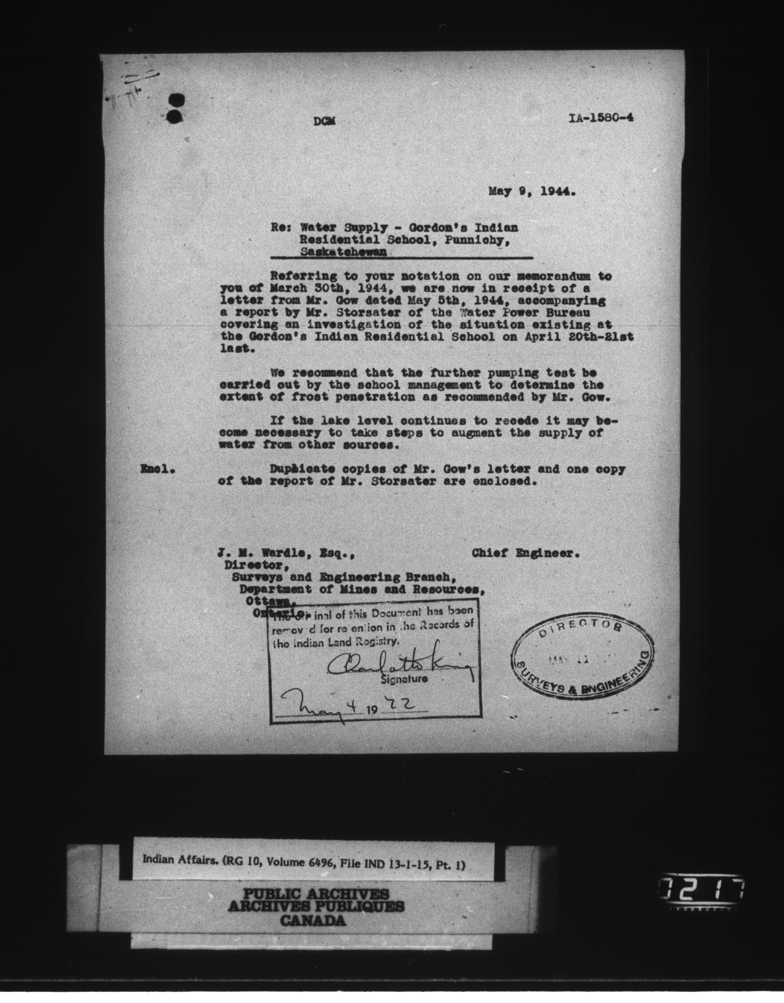 Department of Indian Affairs, Headquarters central registry system : engineering and construction files series - 15036