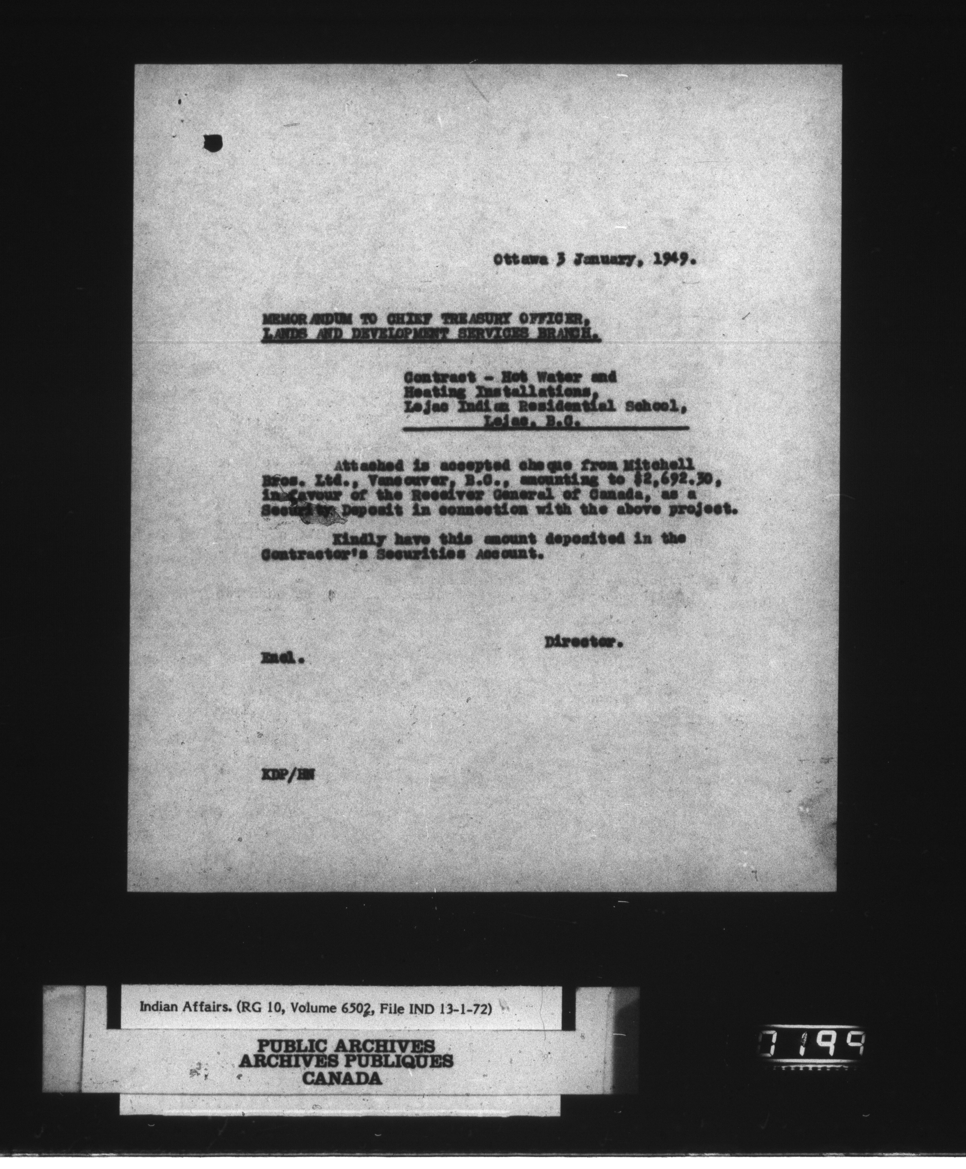 Department of Indian Affairs, Headquarters central registry system : engineering and construction files series - 15040