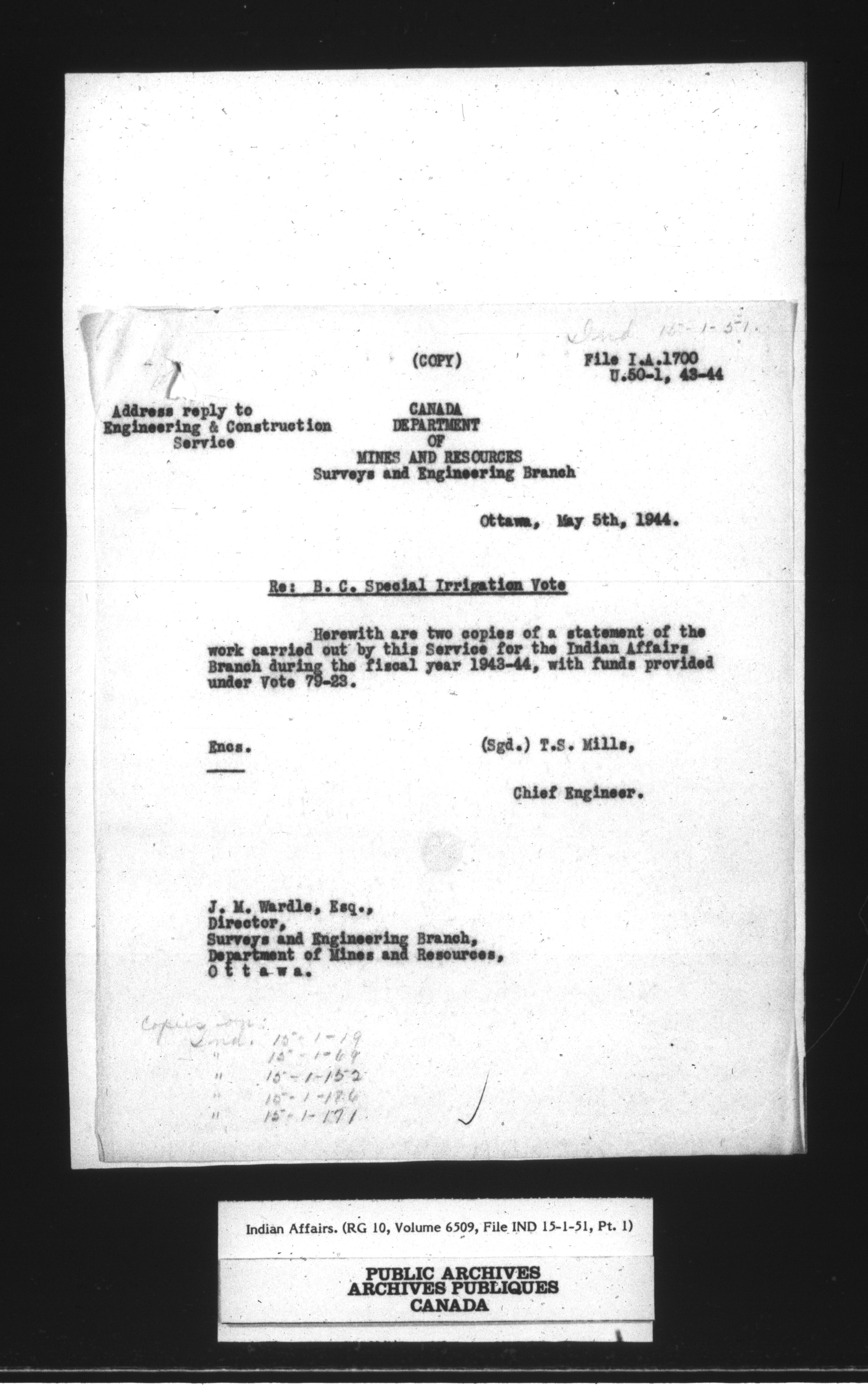 Department of Indian Affairs, Headquarters central registry system : engineering and construction files series - 15044