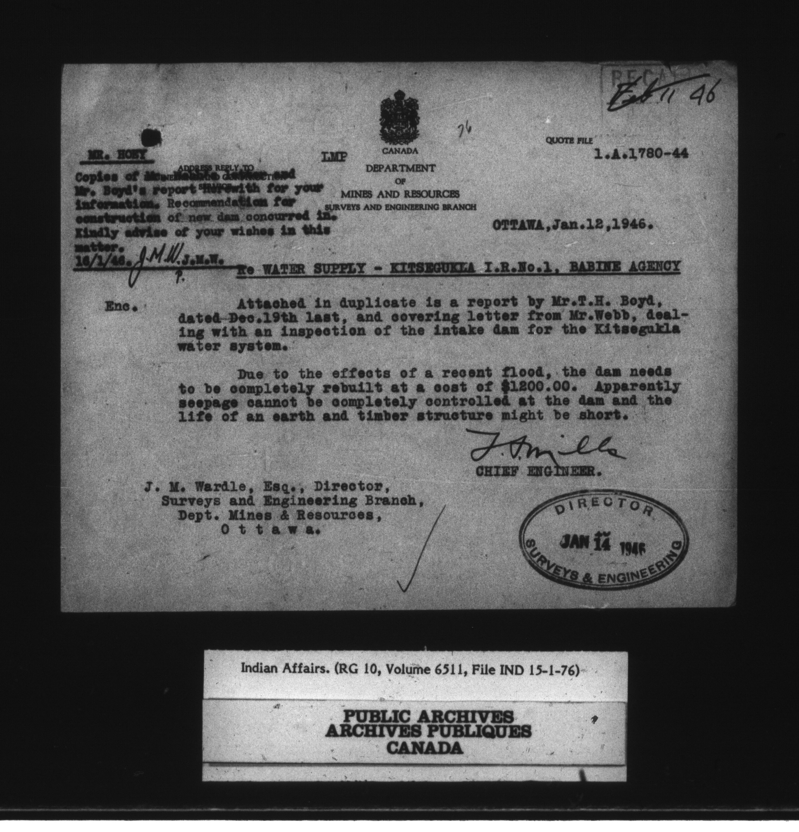 Department of Indian Affairs, Headquarters central registry system : engineering and construction files series - 15045