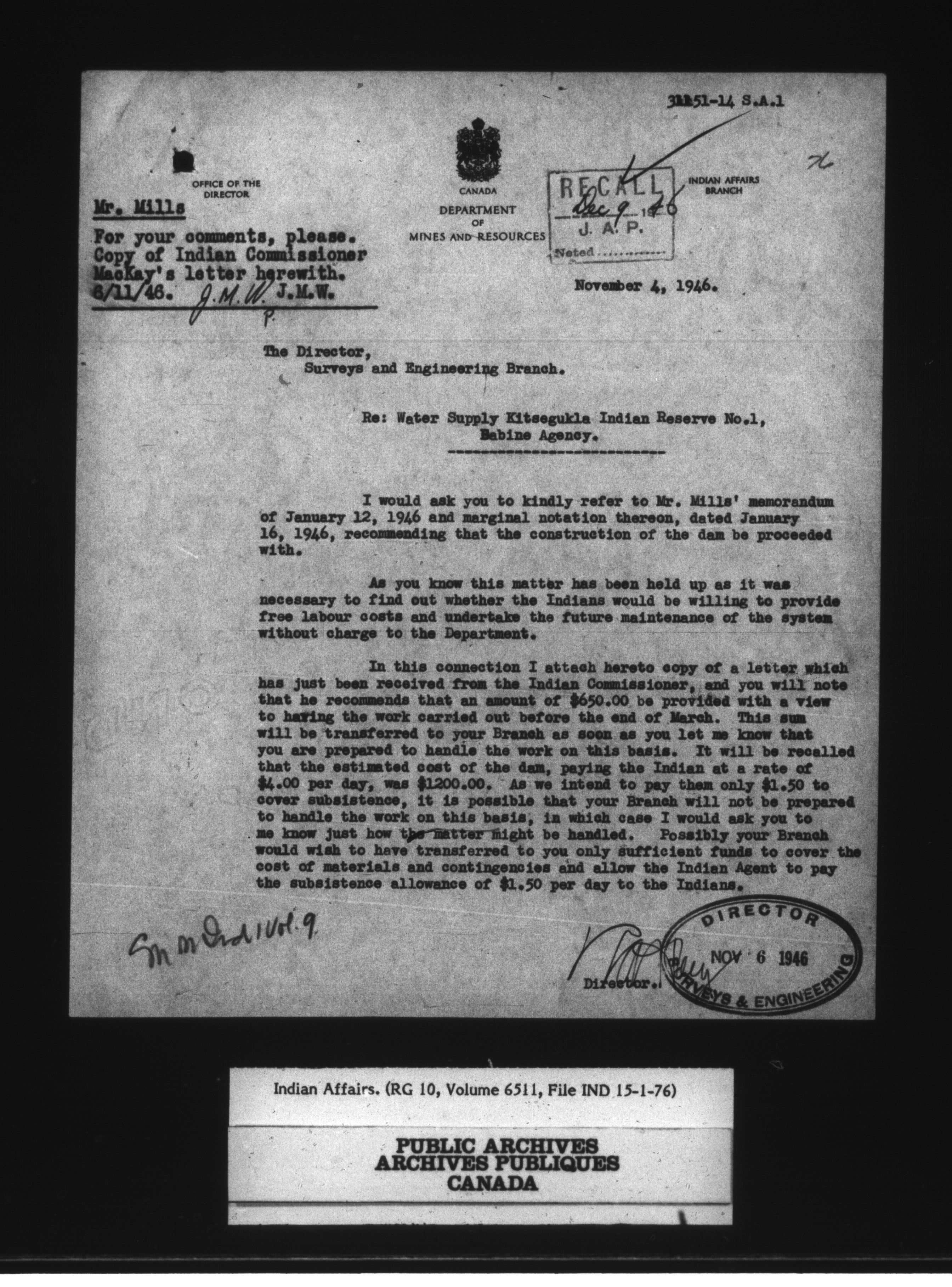 Department of Indian Affairs, Headquarters central registry system : engineering and construction files series - 15045