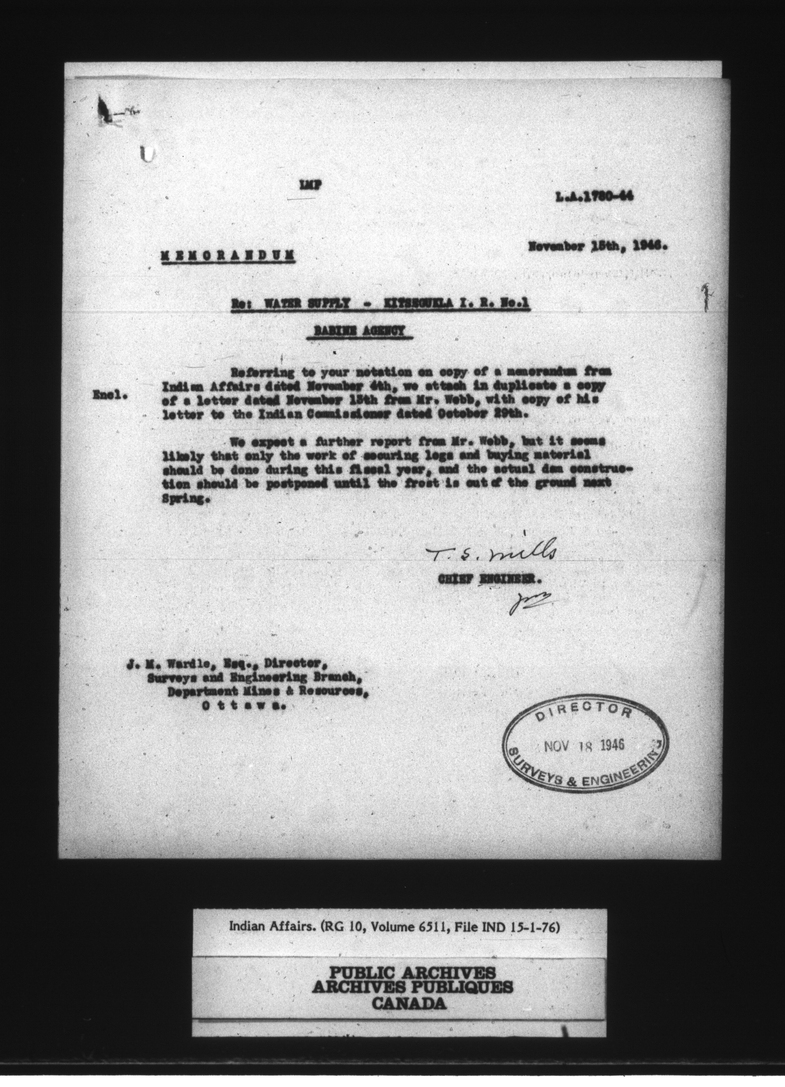 Department of Indian Affairs, Headquarters central registry system : engineering and construction files series - 15045