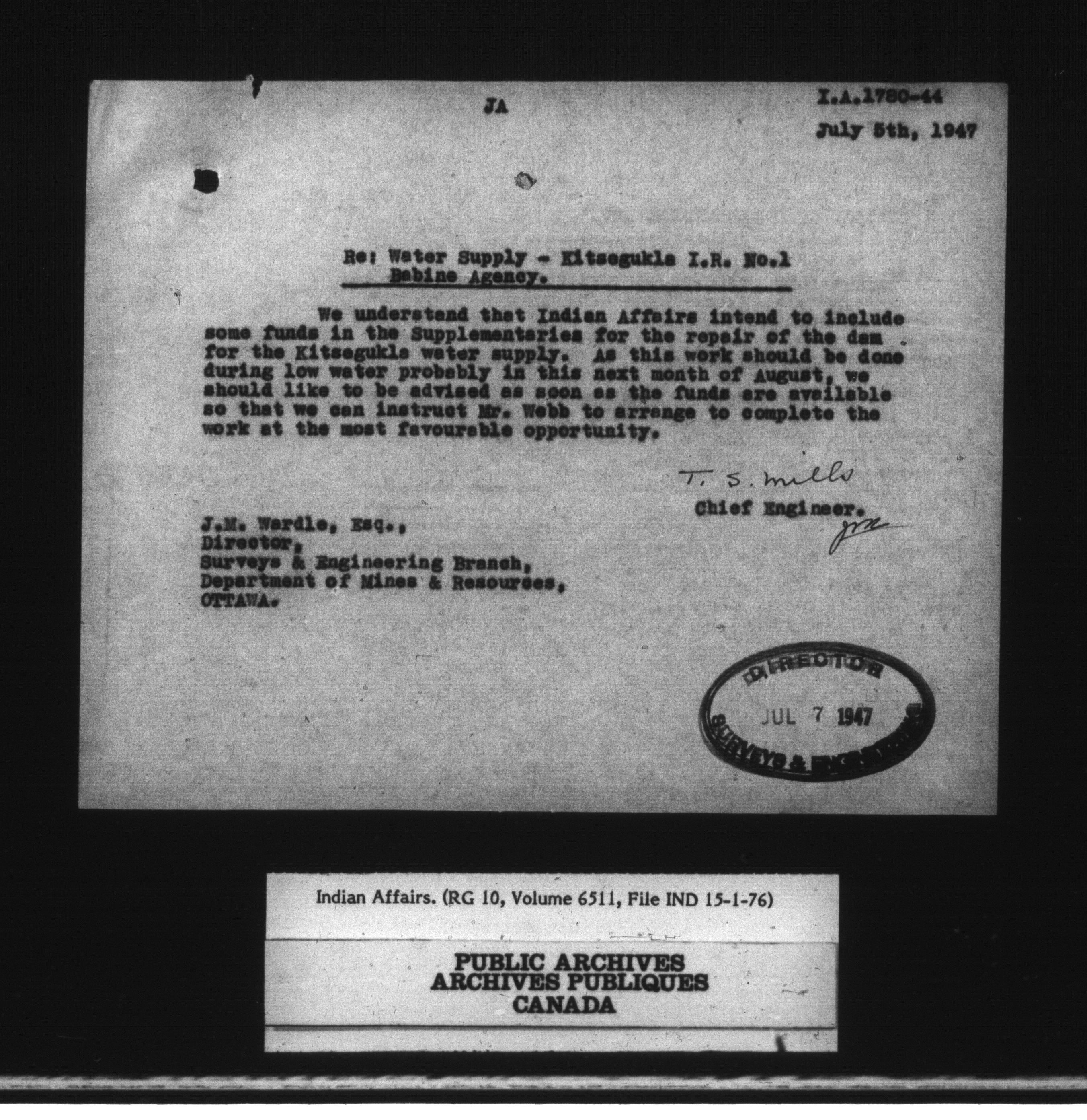 Department of Indian Affairs, Headquarters central registry system : engineering and construction files series - 15045