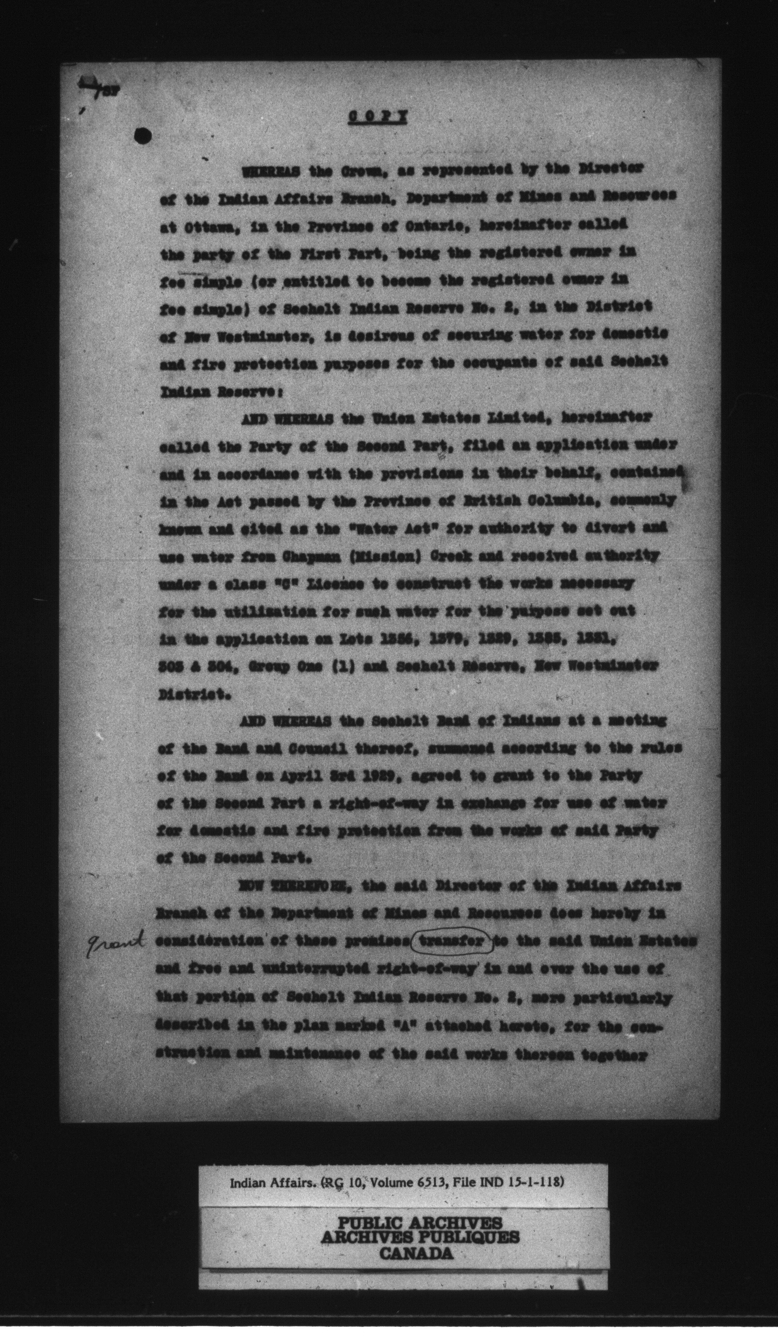 Department of Indian Affairs, Headquarters central registry system : engineering and construction files series : C-15046