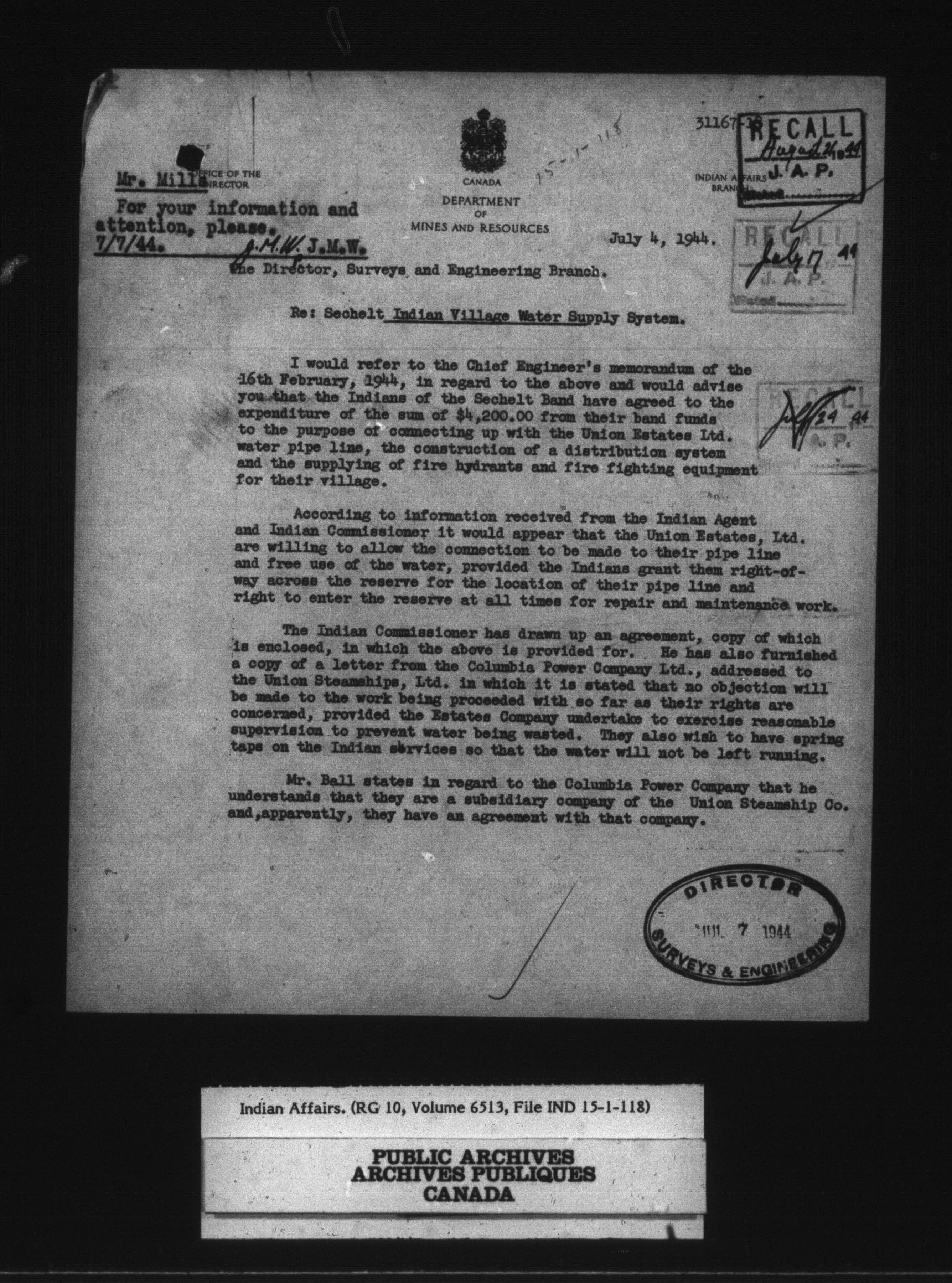 Department of Indian Affairs, Headquarters central registry system : engineering and construction files series : C-15046