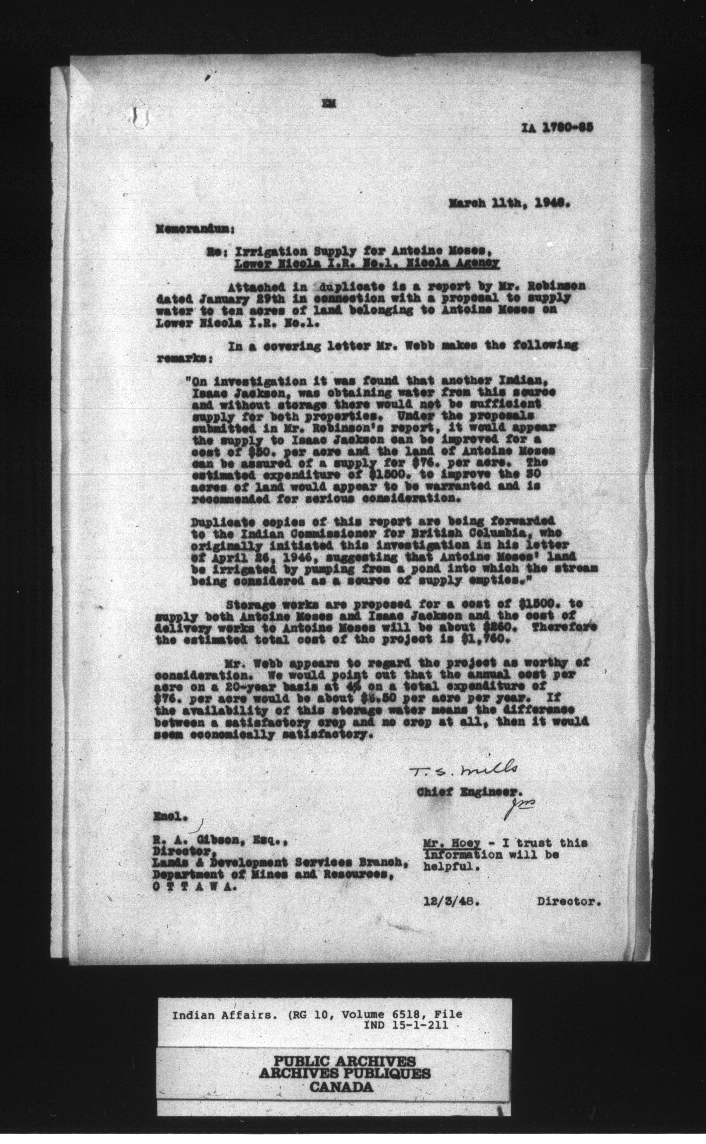 Department of Indian Affairs, Headquarters central registry system : engineering and construction files series : C-15049
