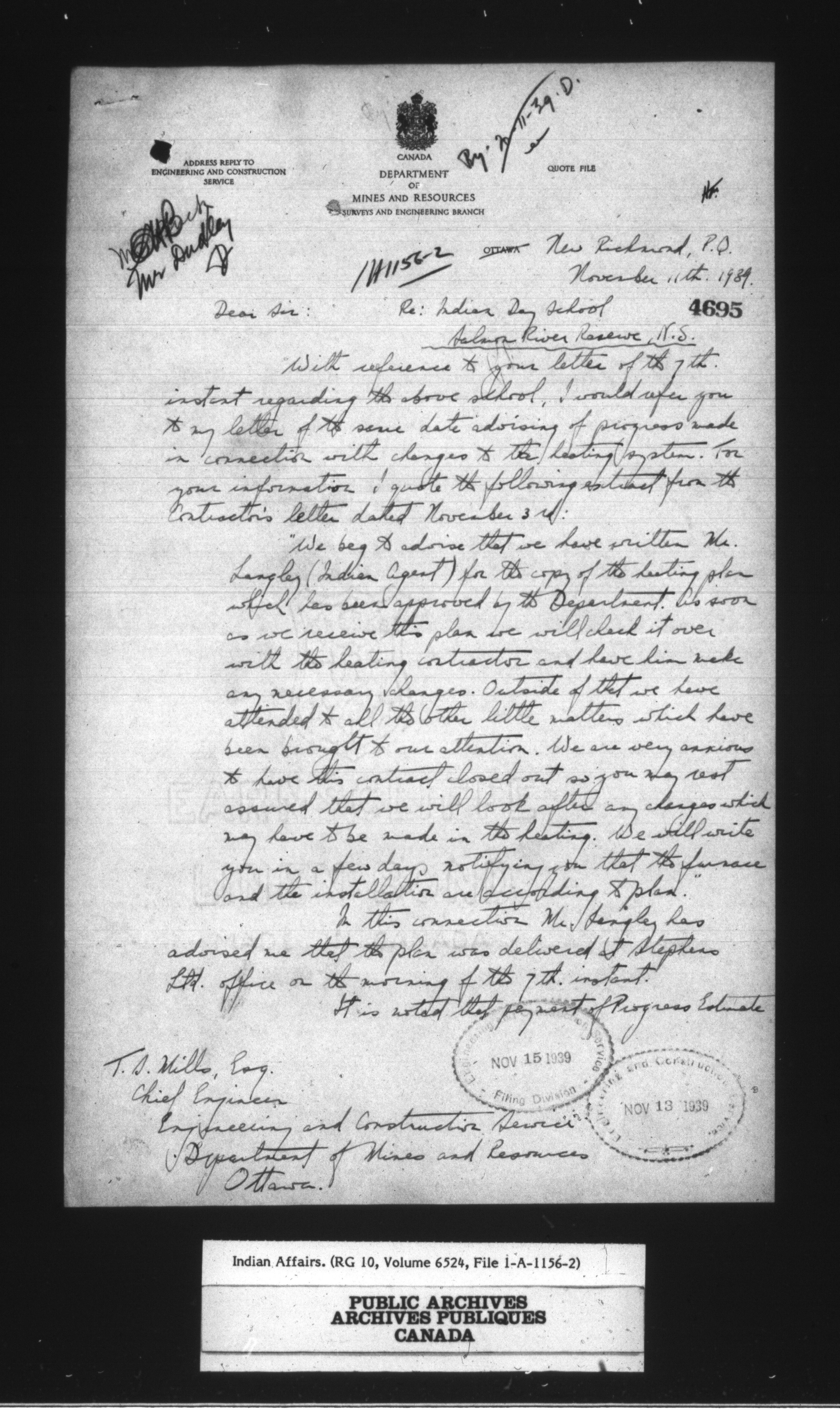 Department of Indian Affairs, Headquarters central registry system : engineering and construction files series - 15051