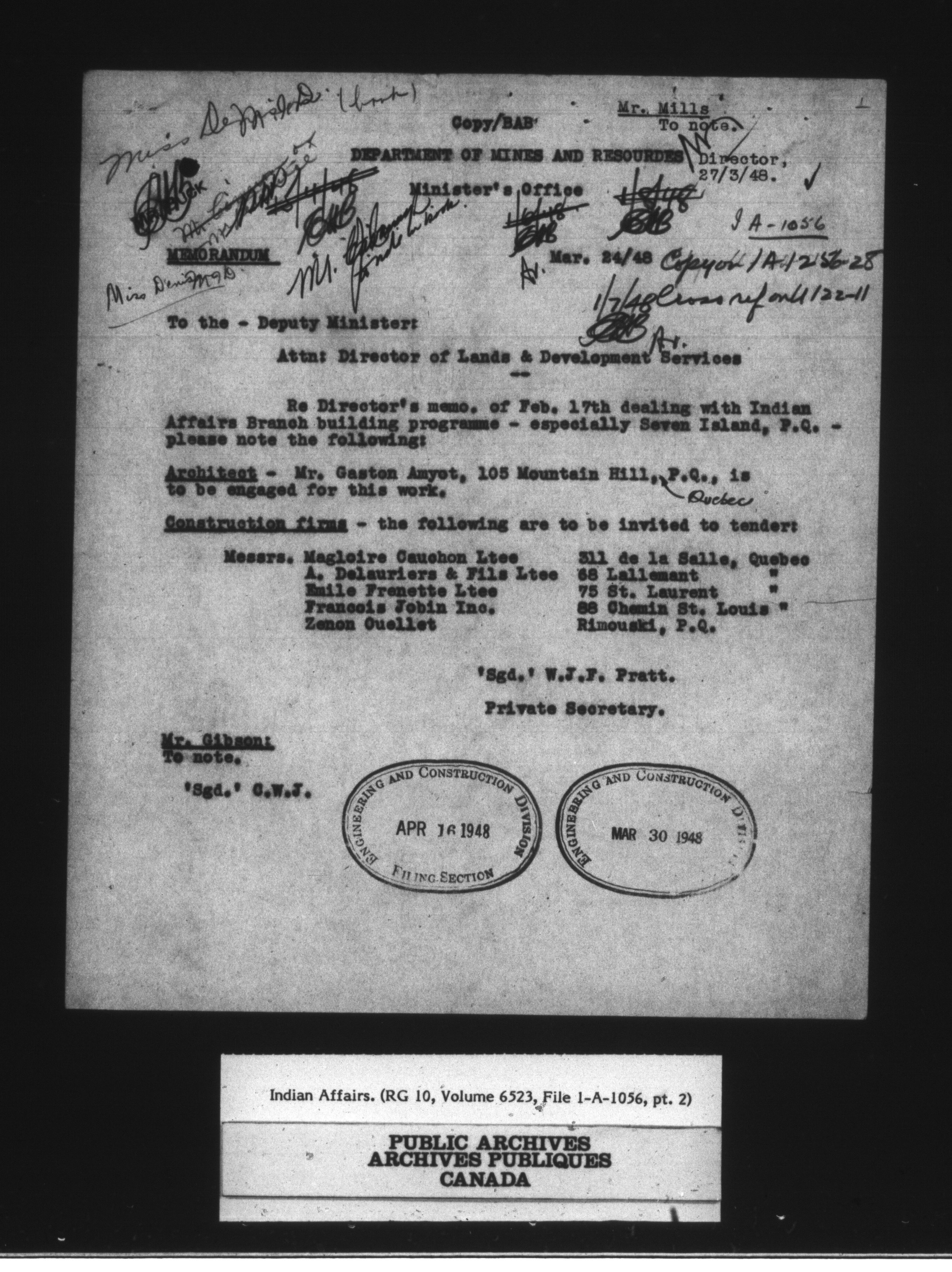 Department of Indian Affairs, Headquarters central registry system : engineering and construction files series - 15051