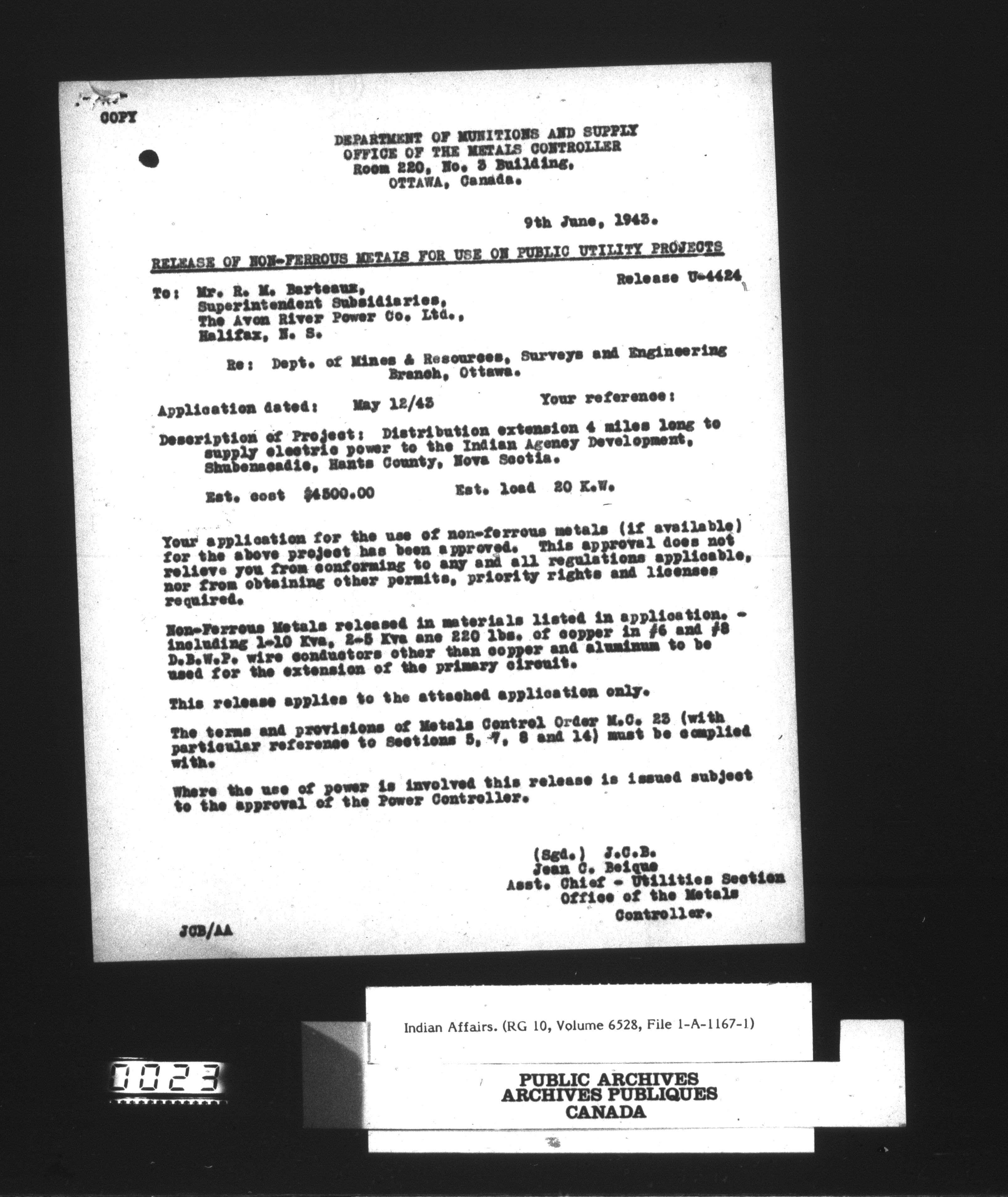 Department of Indian Affairs, Headquarters central registry system : engineering and construction files series - 15054